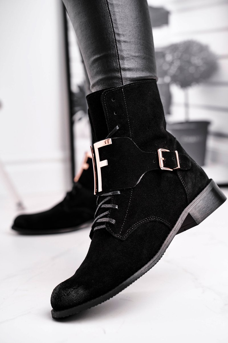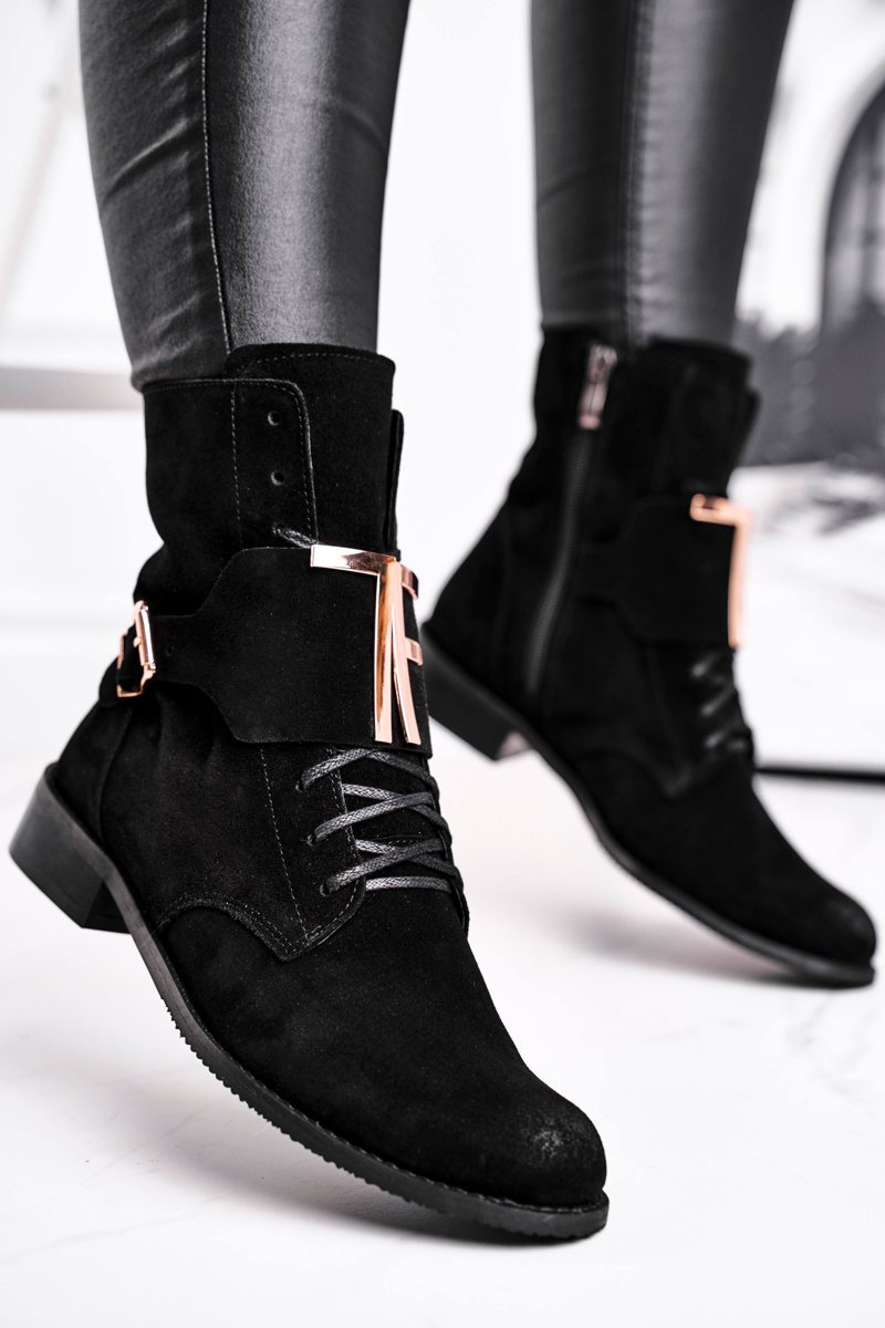 Botki Damskie Zamszowe Czarne Nicole 2591