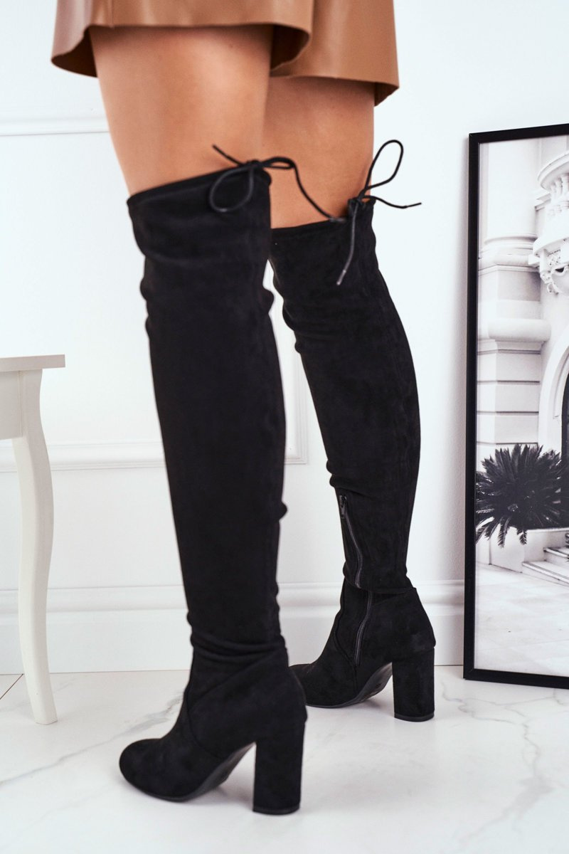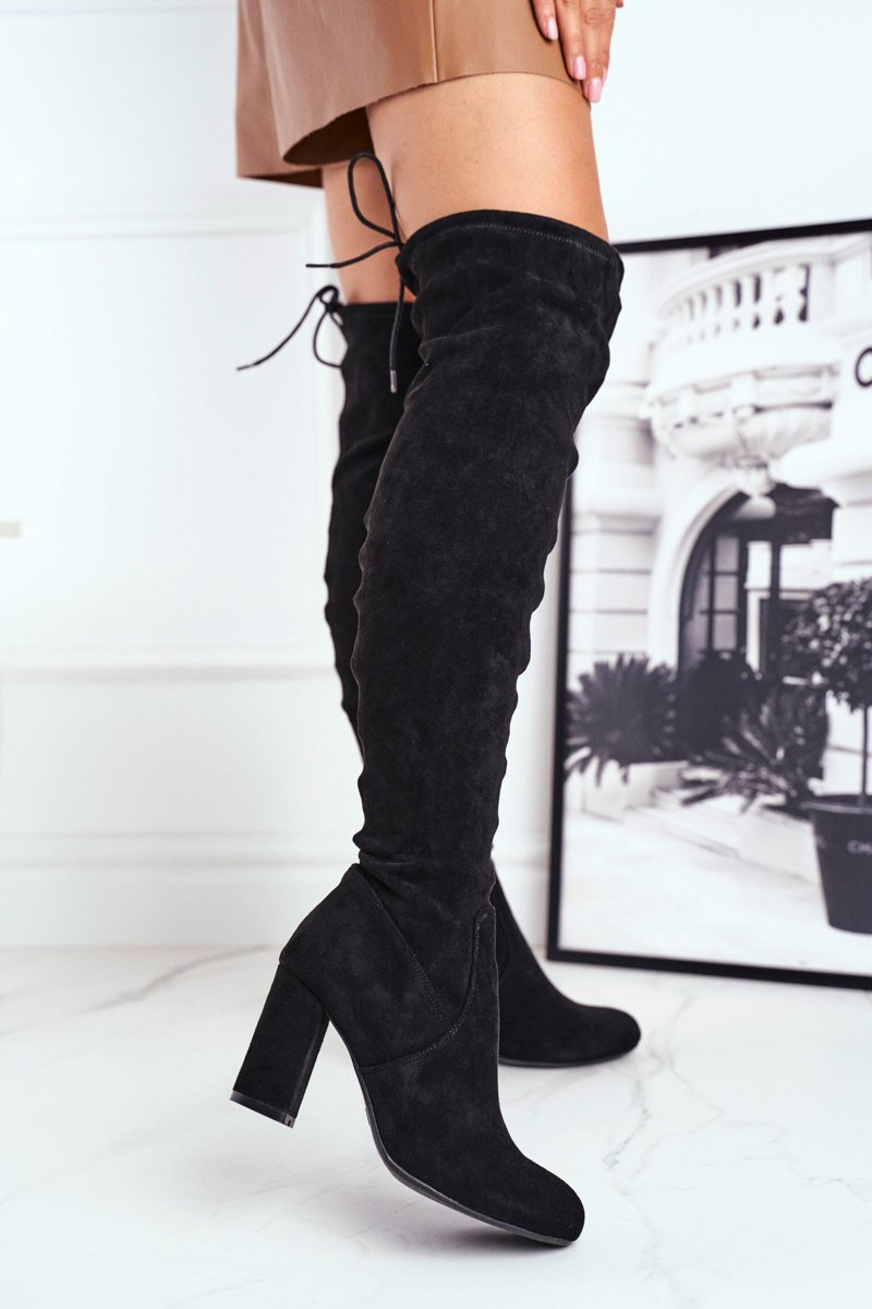 Kozaki Damskie Zamszowe Na Słupku Czarne Highso