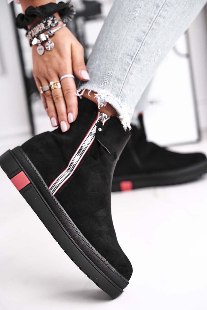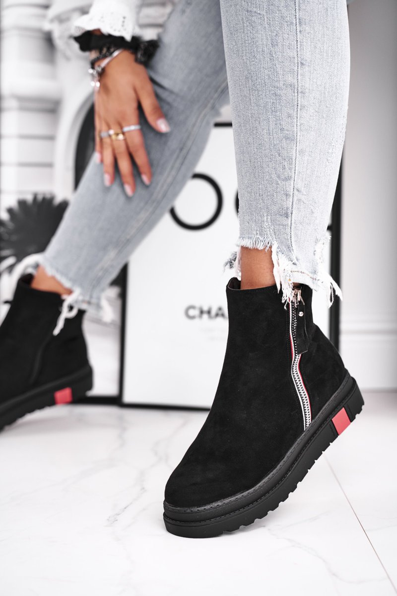 Botki Damskie Dwa Suwaki Czarne Come Back