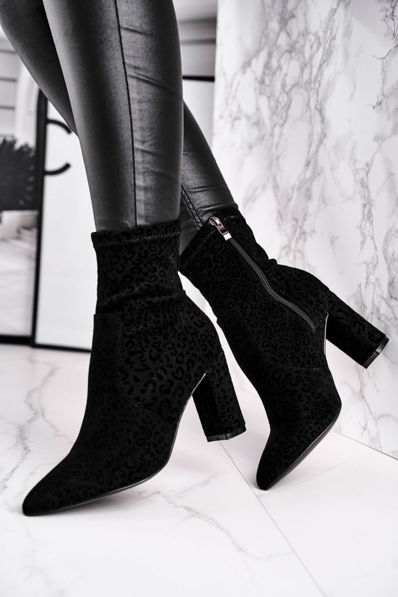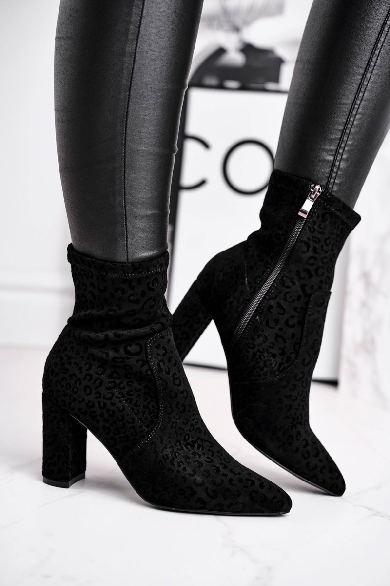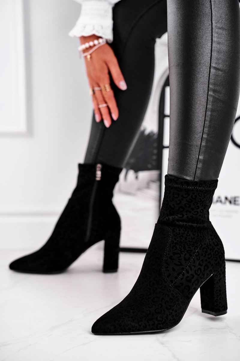 Damskie Botki Na Słupku Cętki Czarne Panther