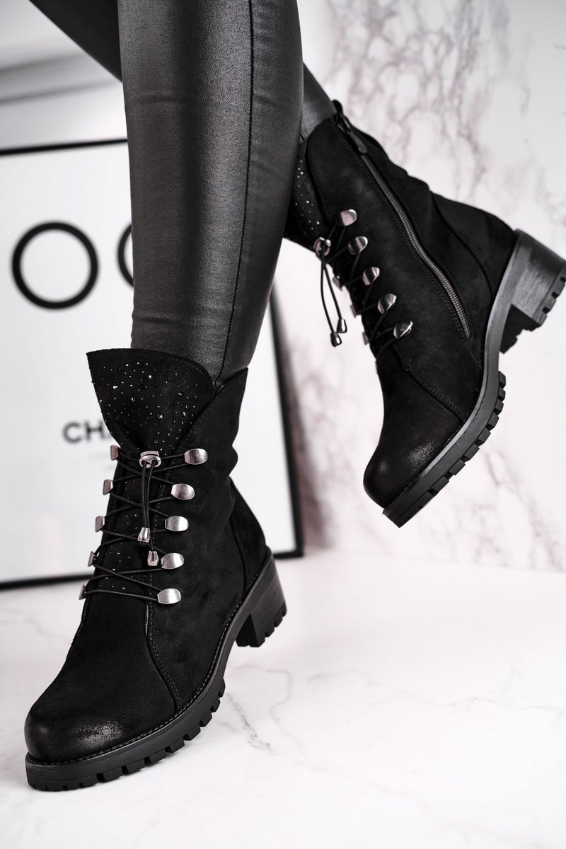 Botki Damskie Workery Ciepłe Czarne Bipper