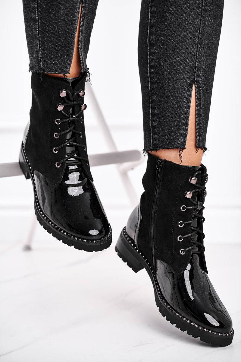 Czy może nas coś jeszcze zaskoczyć? Oczywiście! Spójrz na te przepiękne botki. Wierzch to połączenie lakierowanej skóry ekologicznej oraz eko zamszu. Wnętrze pokryte ciepłym i miłym w dotyku kocem obuwniczym, więc nie będziesz wiedzieć co to mroźne dni! Fason klasycznie sznurowany z dodatkowym zapinaniem na suwak z boku cholewki. Nie zwlekaj, bo te cudeńka rozchodzą się bardzo szybko! Przy wyborze rozmiaru prosimy sugerować się tabelą rozmiarów.