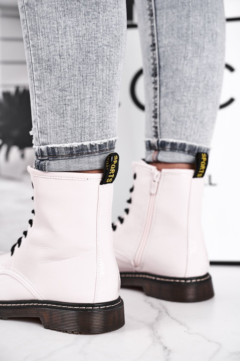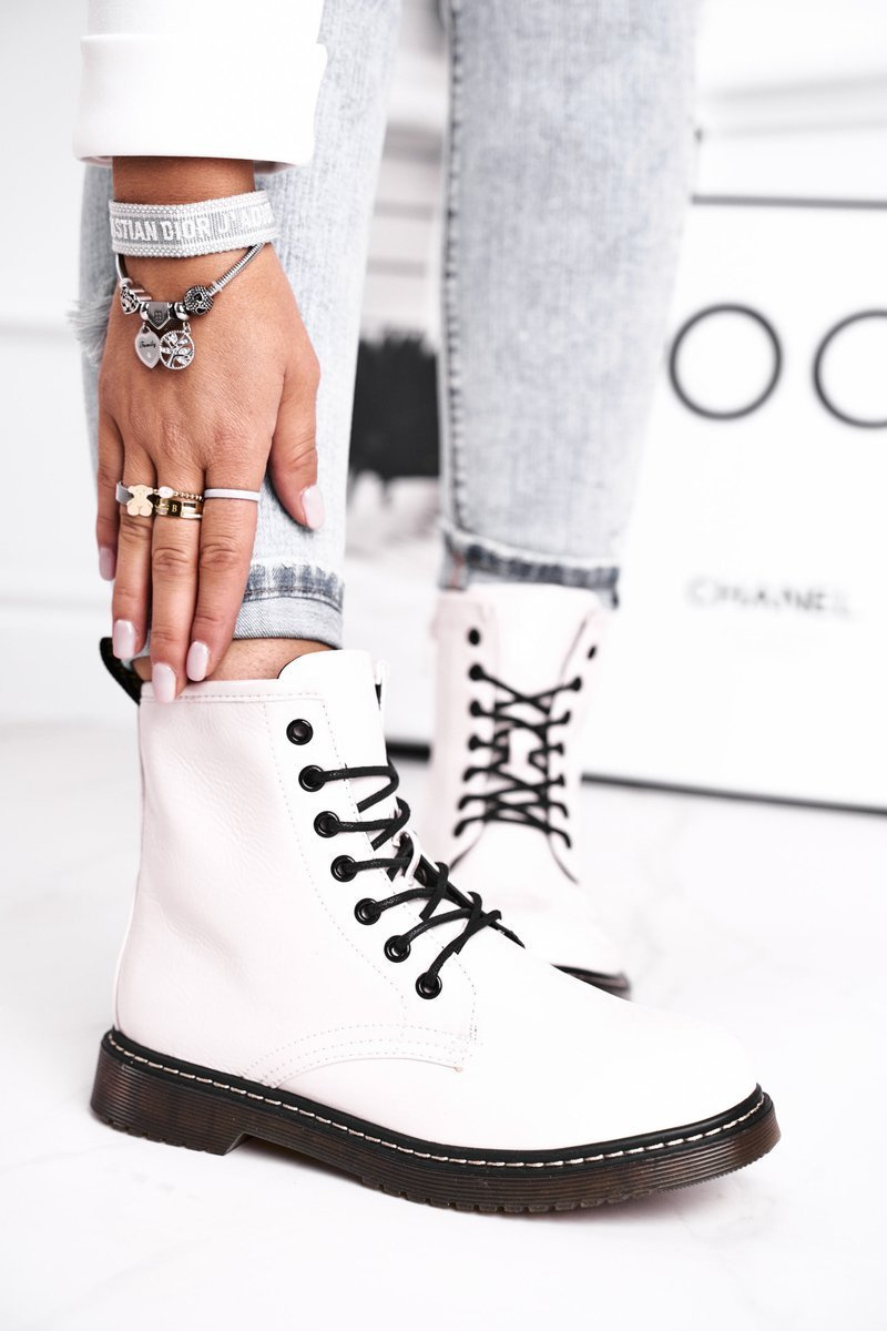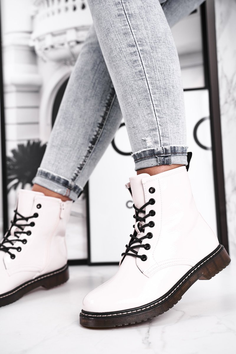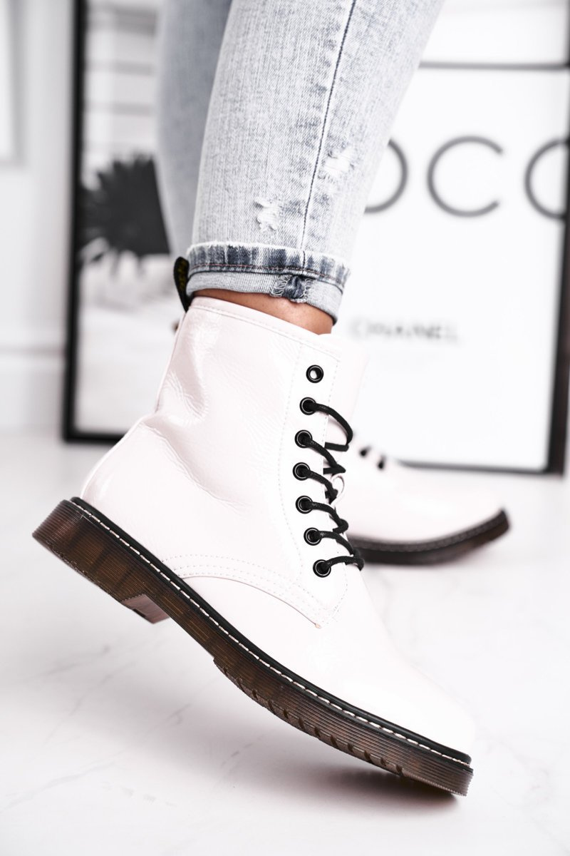 Botki Damskie Lakierowane Trapery Glany Białe Marita