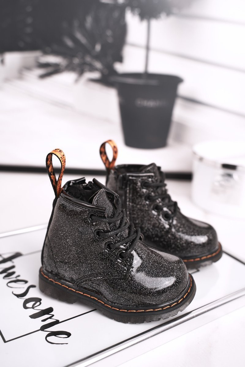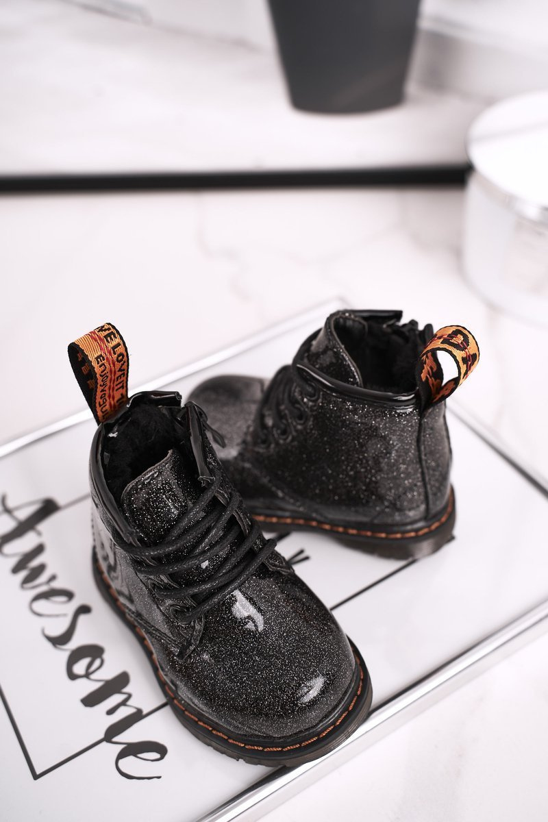 Dziecięce Botki Ocieplane z Suwakiem Lakierowane Brokat Czarne Mistor
