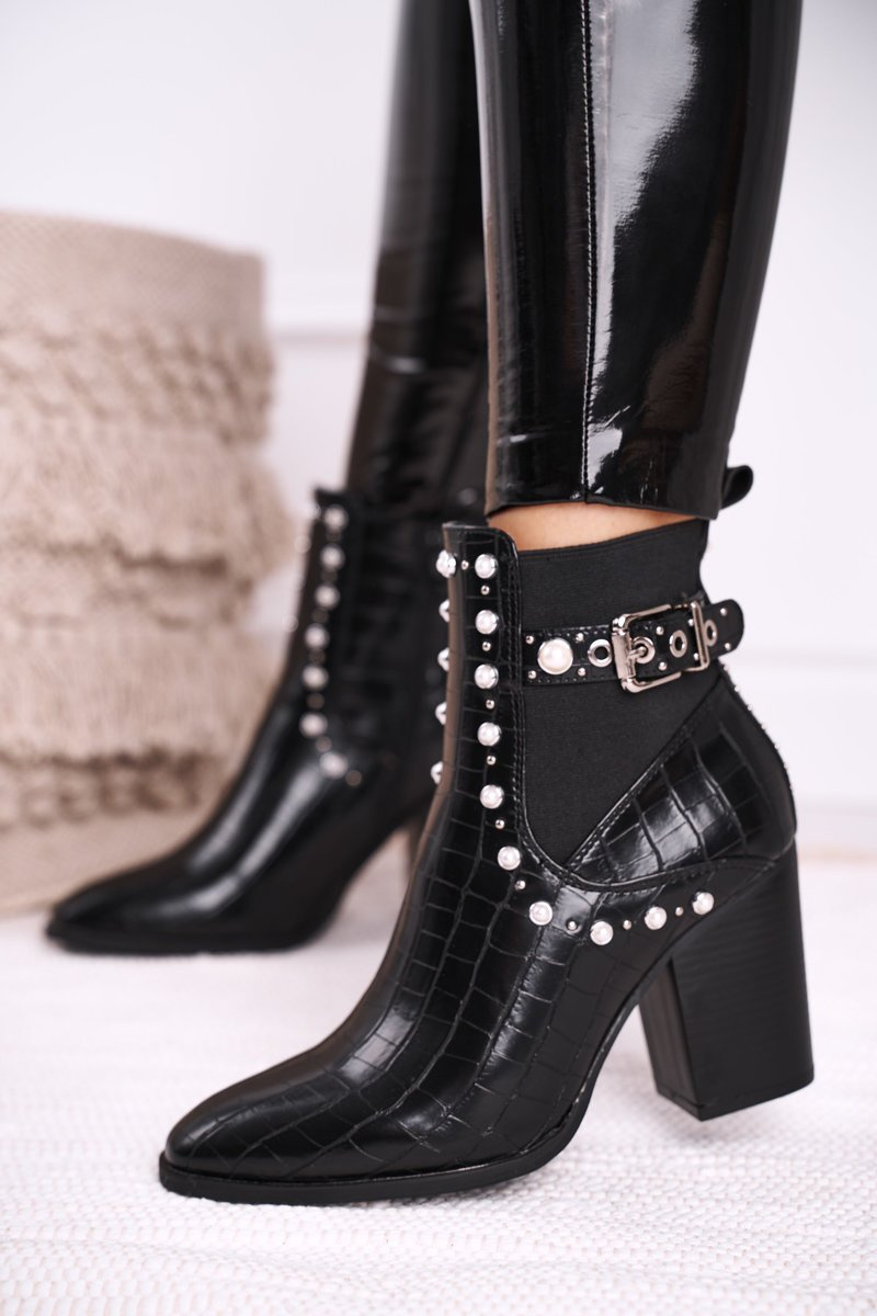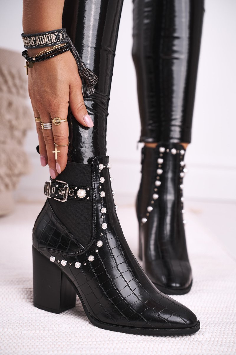 Damskie Botki Na Słupku Perły Czarne Verbos