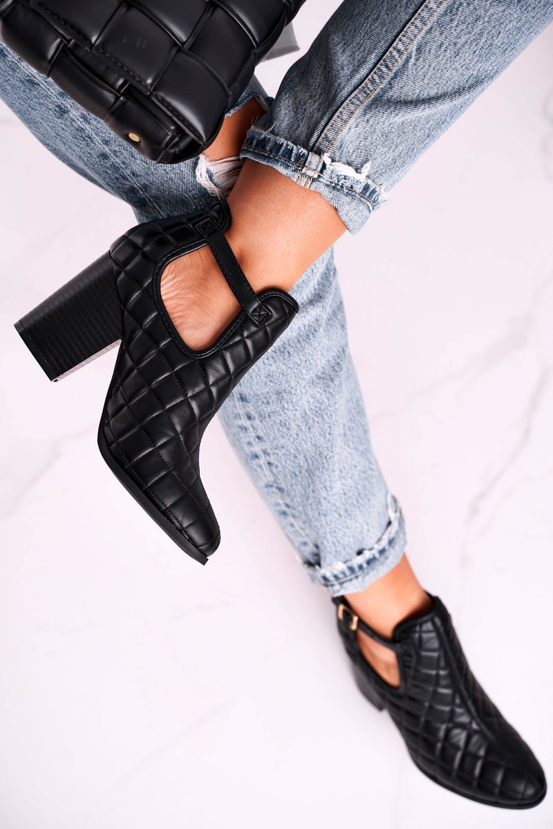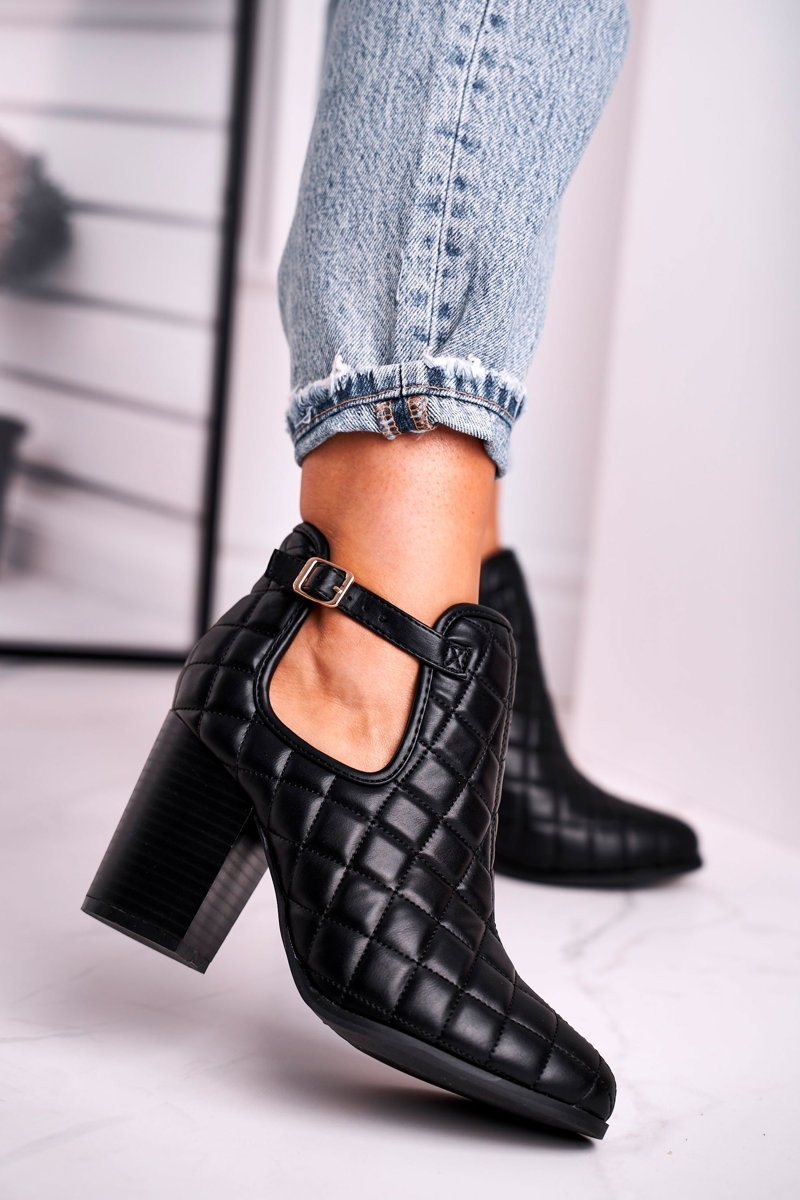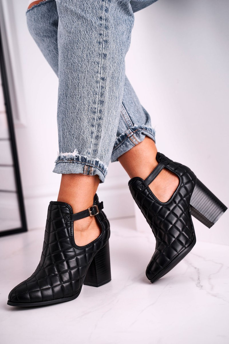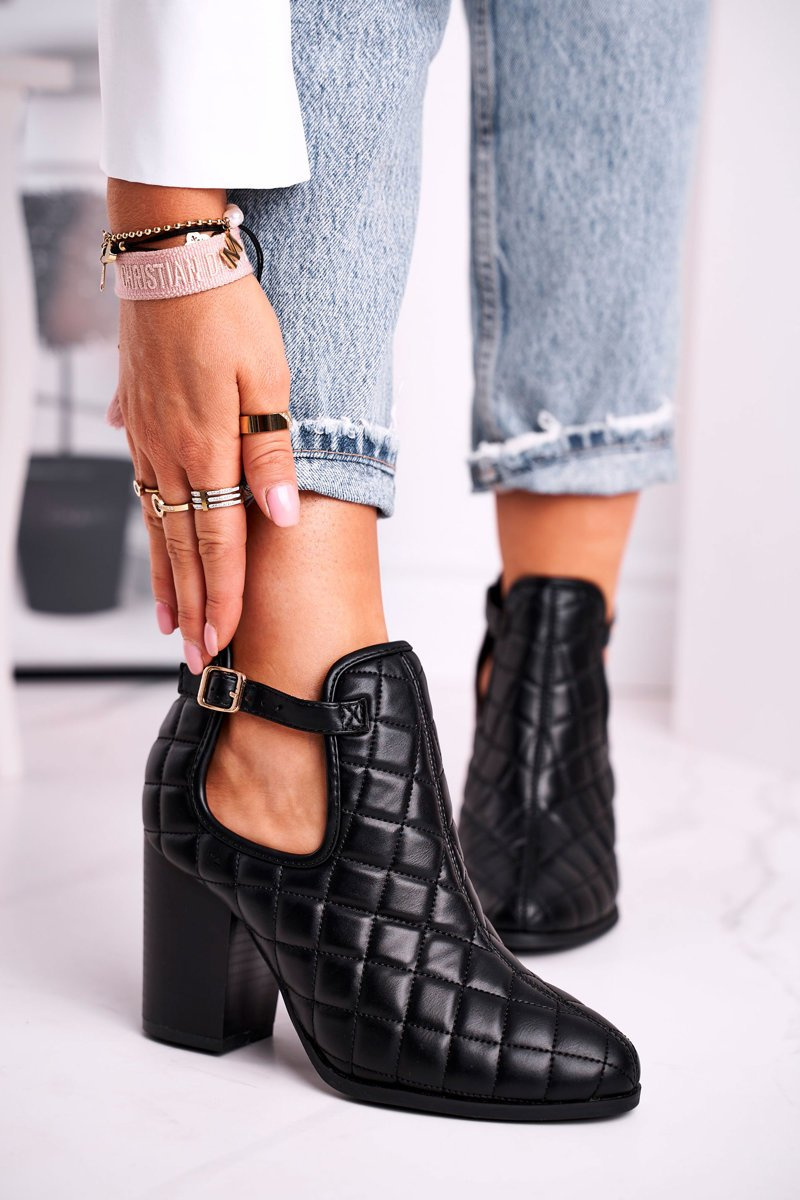 Botki Damskie Na Słupku Pikowane Z Wycięciami Czarne Dreams