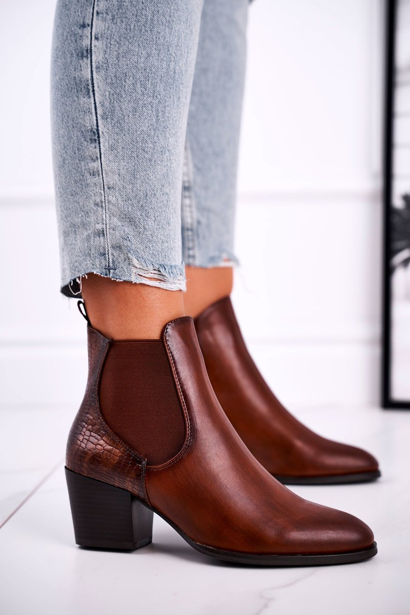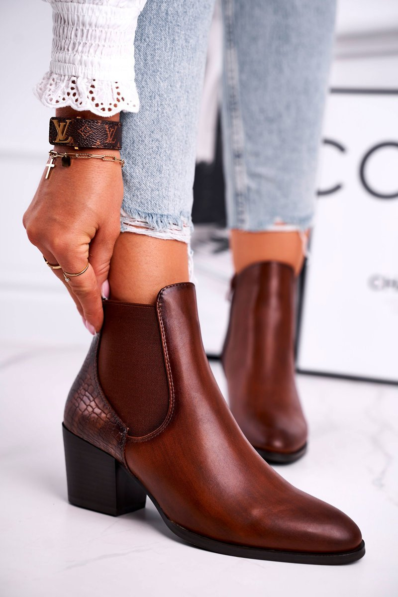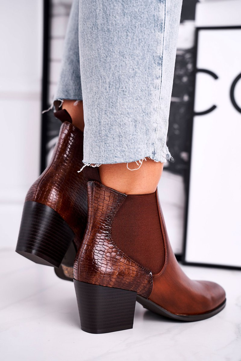 Botki Damskie Na Obcasie Sergio Leone Brązowe BT613
