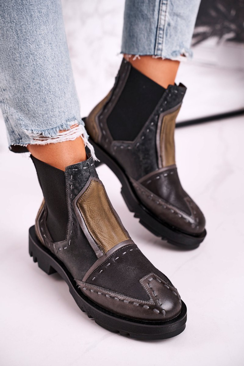 Botki Damskie Skórzane Sztyblety Maciejka Szare 04634-03