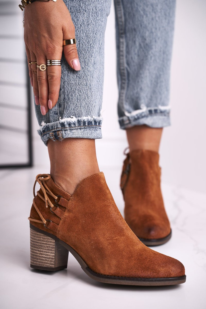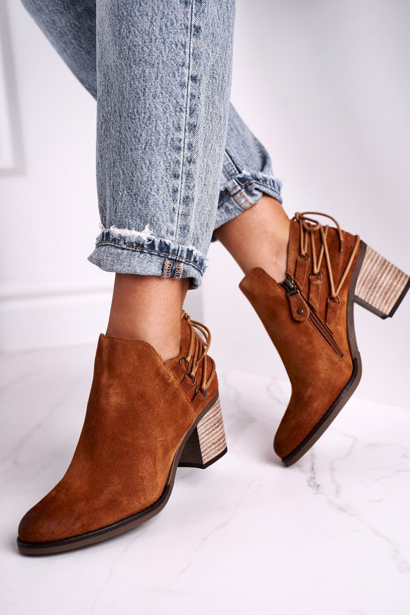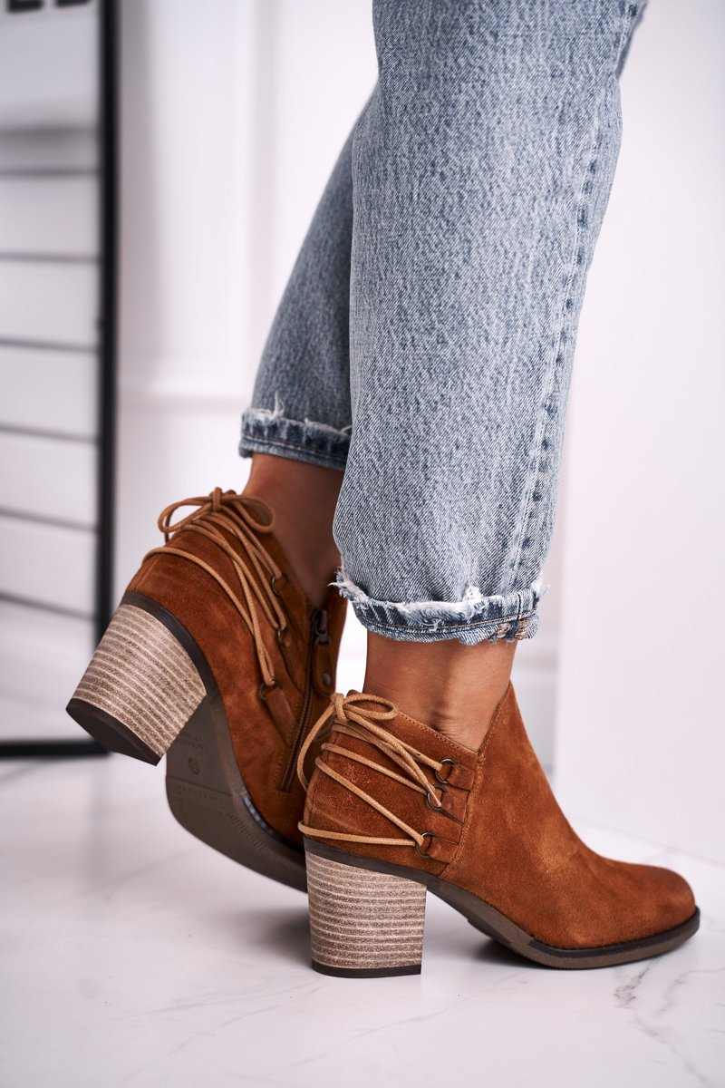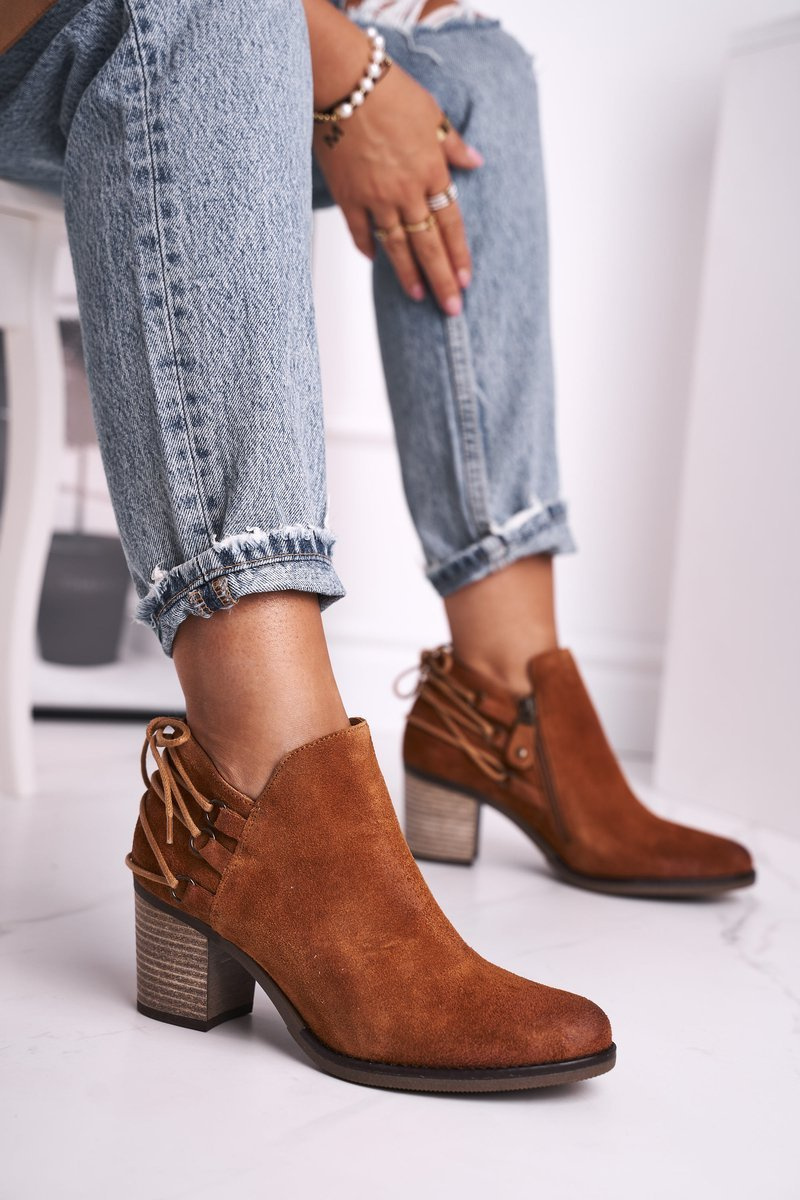 Botki Damskie Na Słupku Maciejka Skóra Rude 04812-29