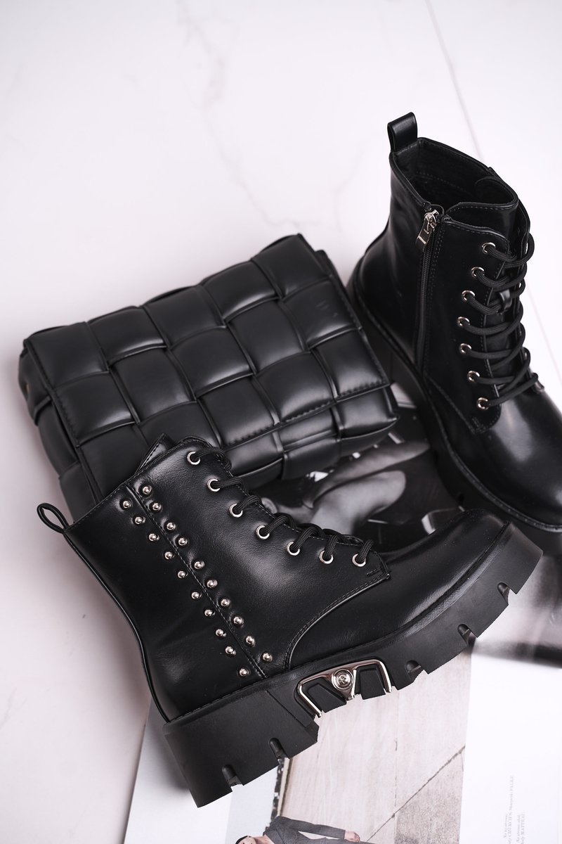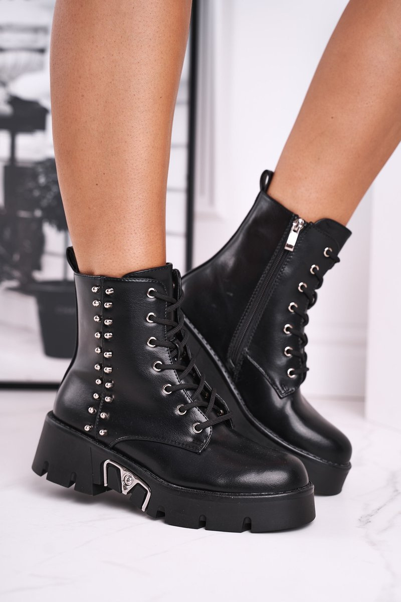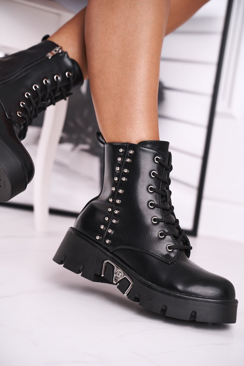 Botki Damskie Z Nitami Na Platformie Grunge Czarne Hard Rock
