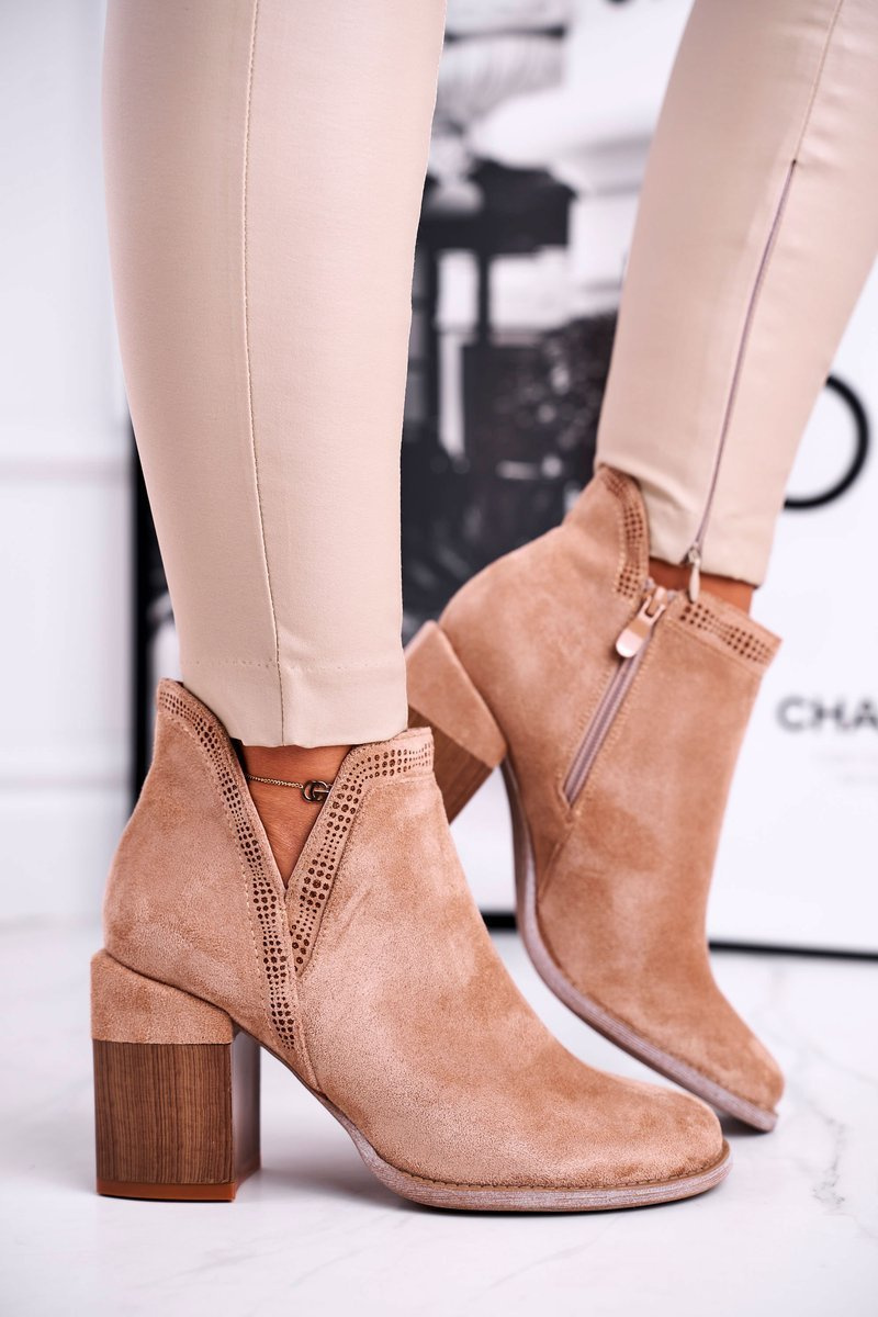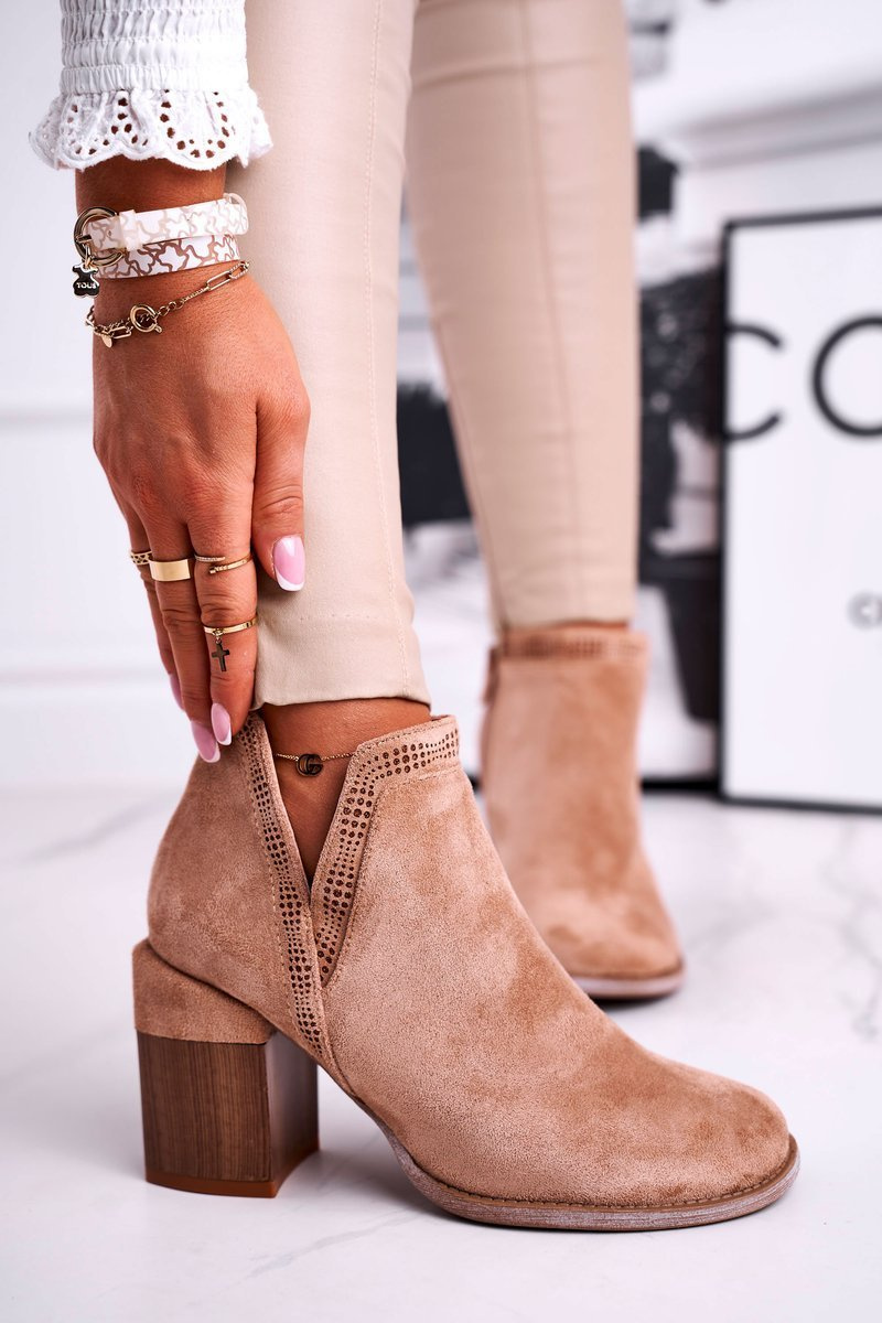 Damskie Botki Na Słupku Wycięte Khaki Meliori Dream