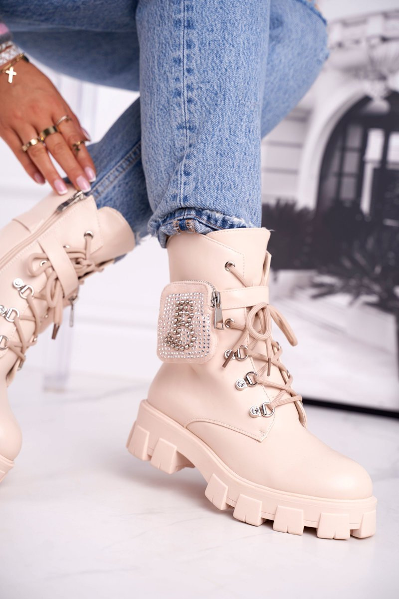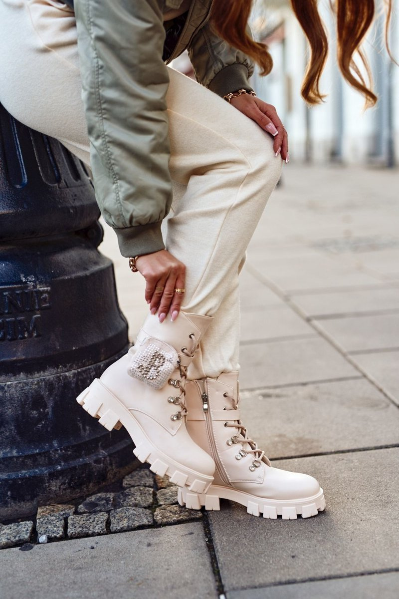 Botki Damskie Na Platformie Ocieplane Beżowe Seul