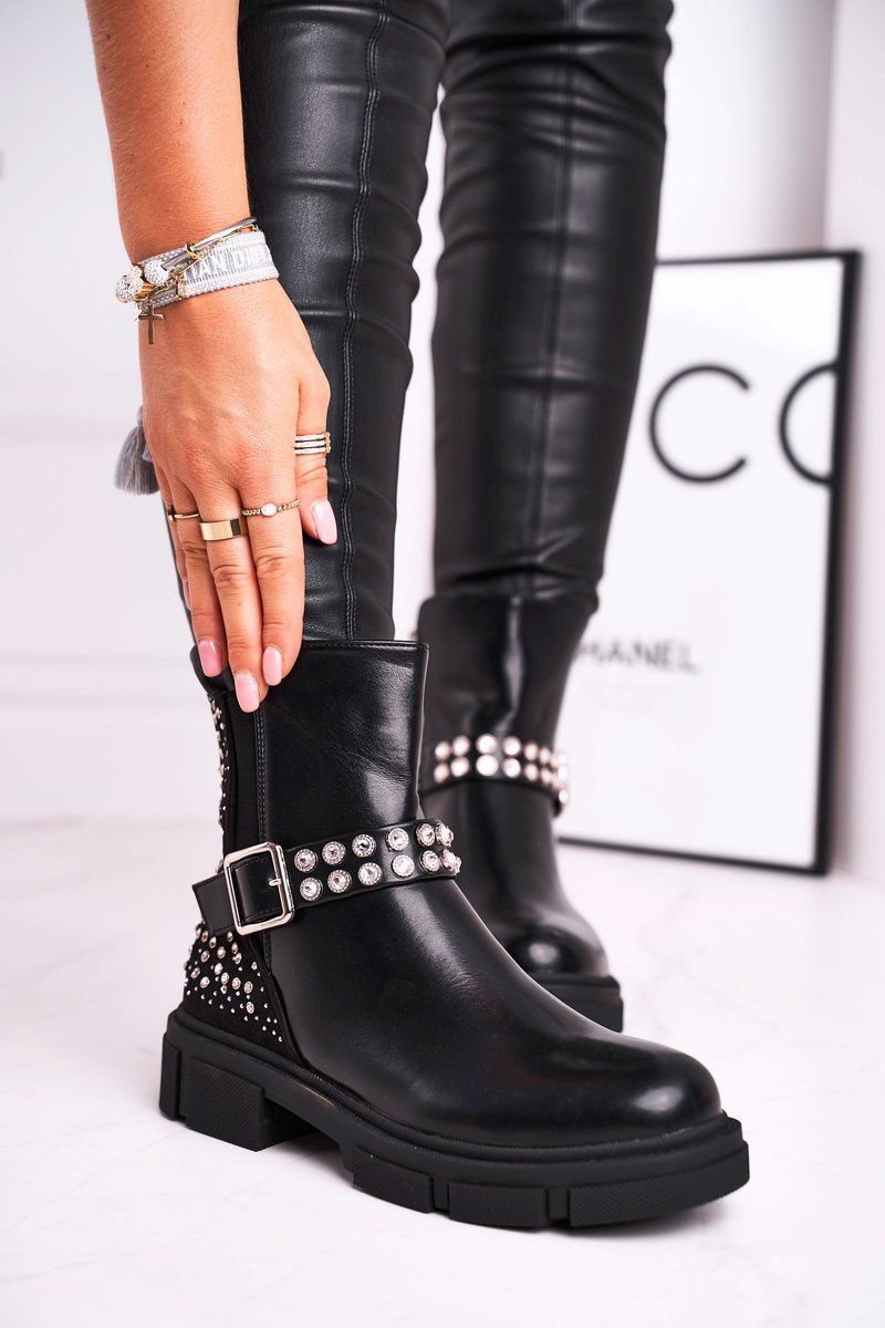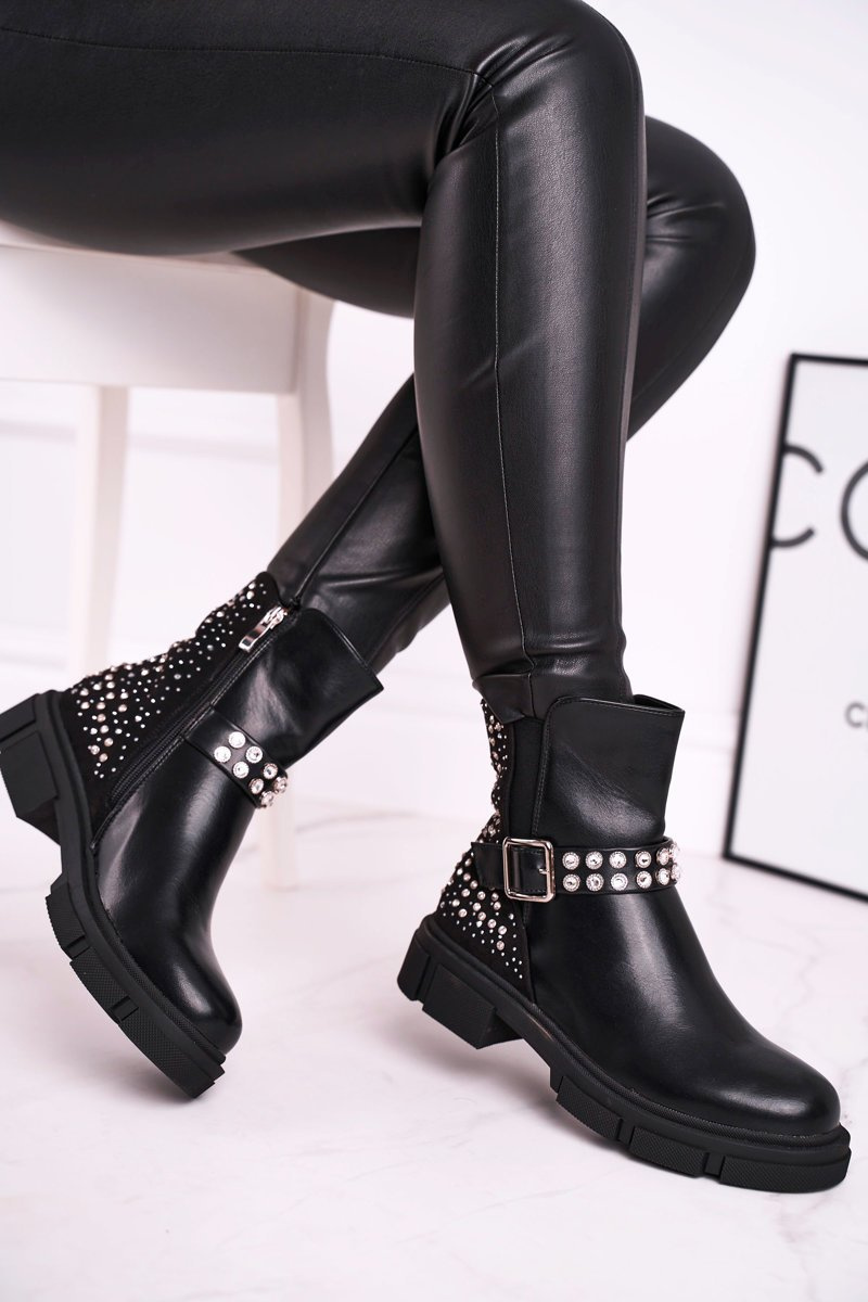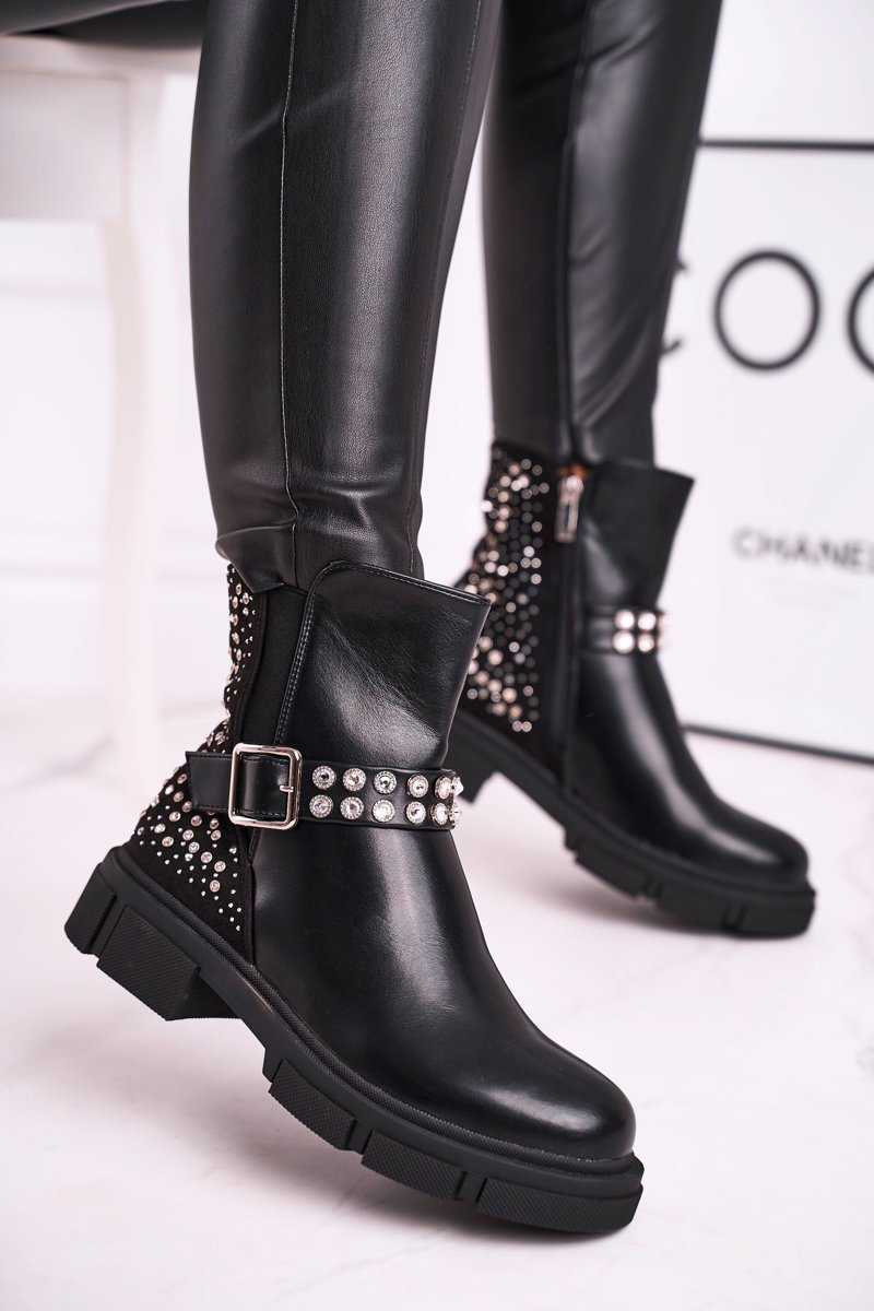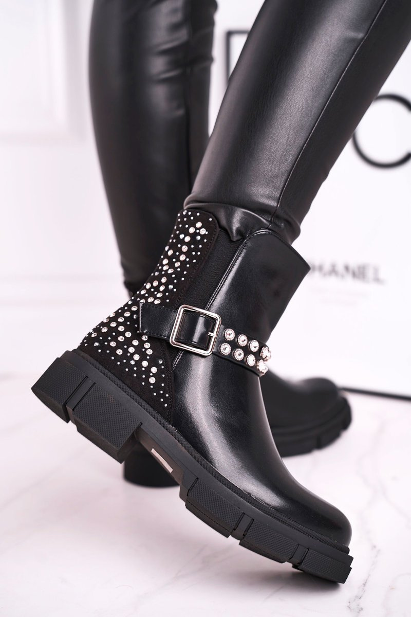 Botki Damskie Z Cyrkoniami Czarne Giuliana