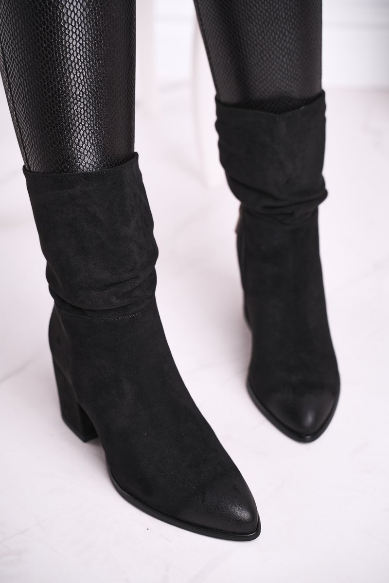 Botki Damskie Na Słupku Eko-Zamsz Czarne Up Side