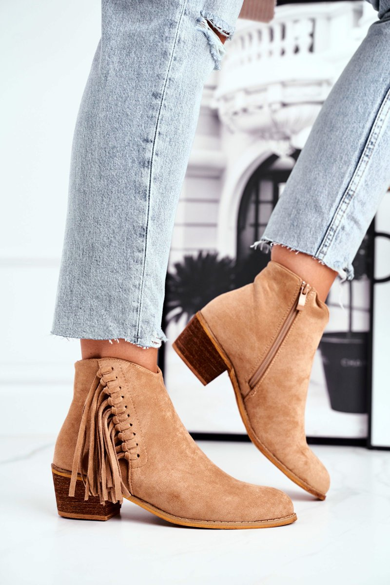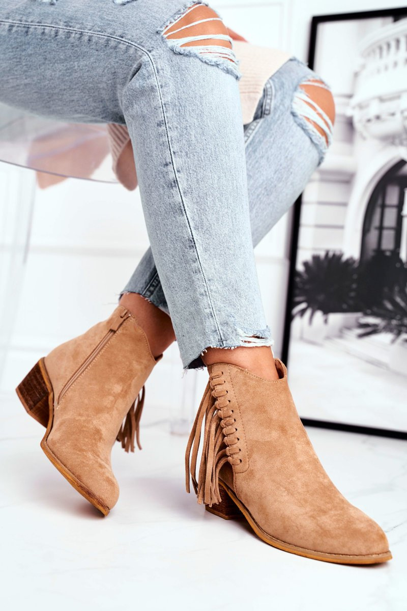 Botki Damskie Na Słupku Z Frędzlami Kowbojki Khaki Mirage