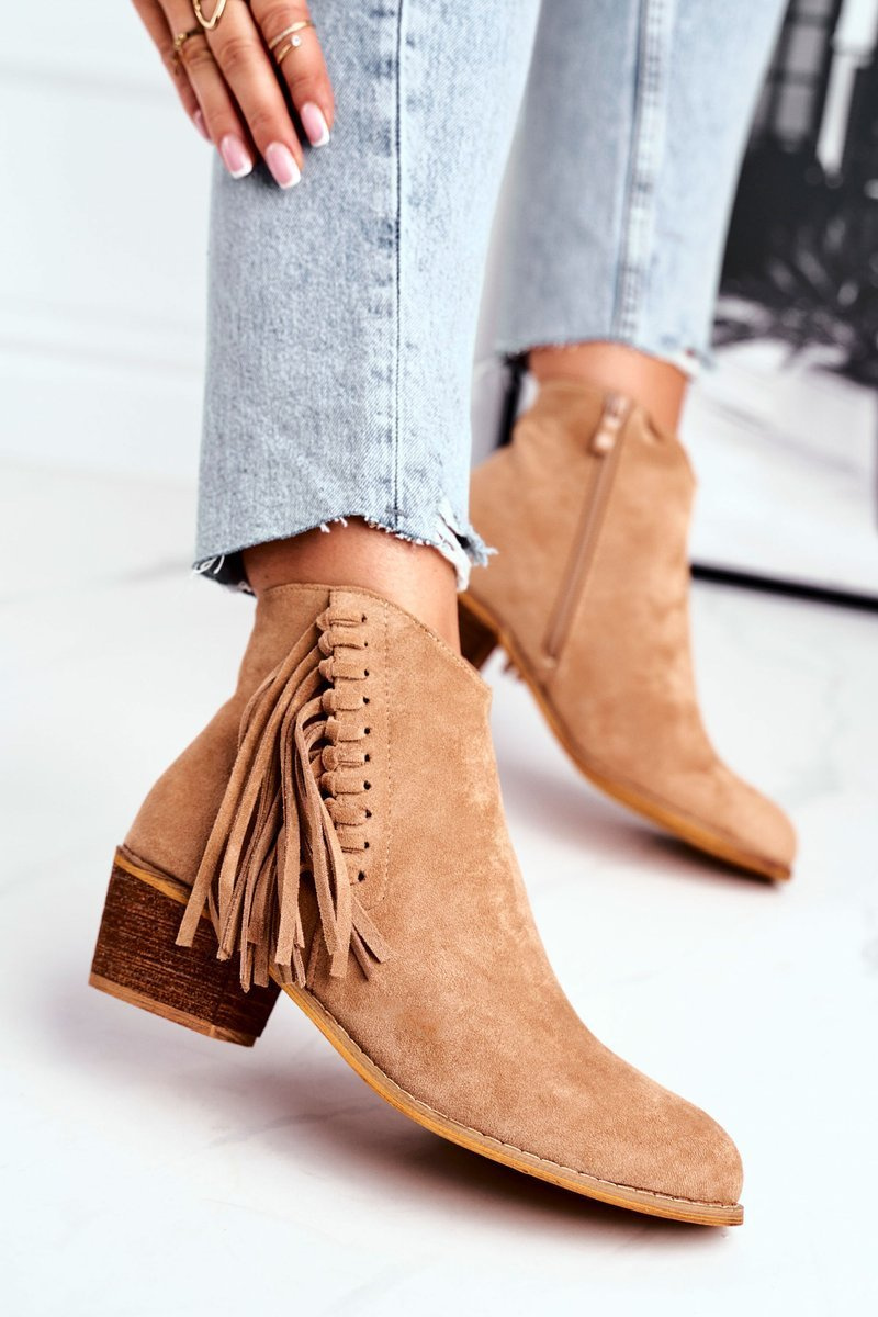 Botki to nie tylko buty na chłodne dni. Świetnie sprawdzą się również podczas tworzenia stylizacji w cieplejsze dni. Botki na boku posiadają suwak ułatwiający zakładanie, oraz ozdobne frędzle w kowbojskim stylu. Idealne do zwiewnych sukienek oraz jeansowych spodni. Uwielbiamy taki styl a Wy? Przy wyborze rozmiaru prosimy sugerować się tabelą rozmiarów.