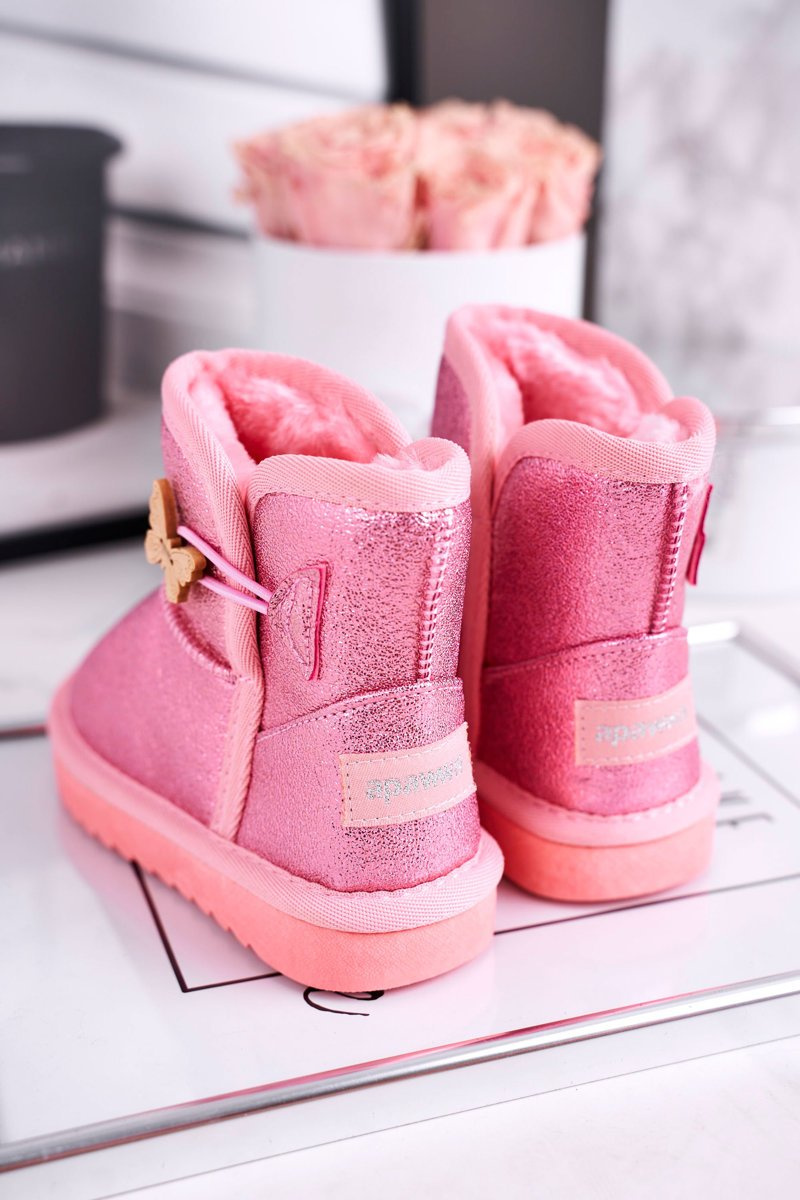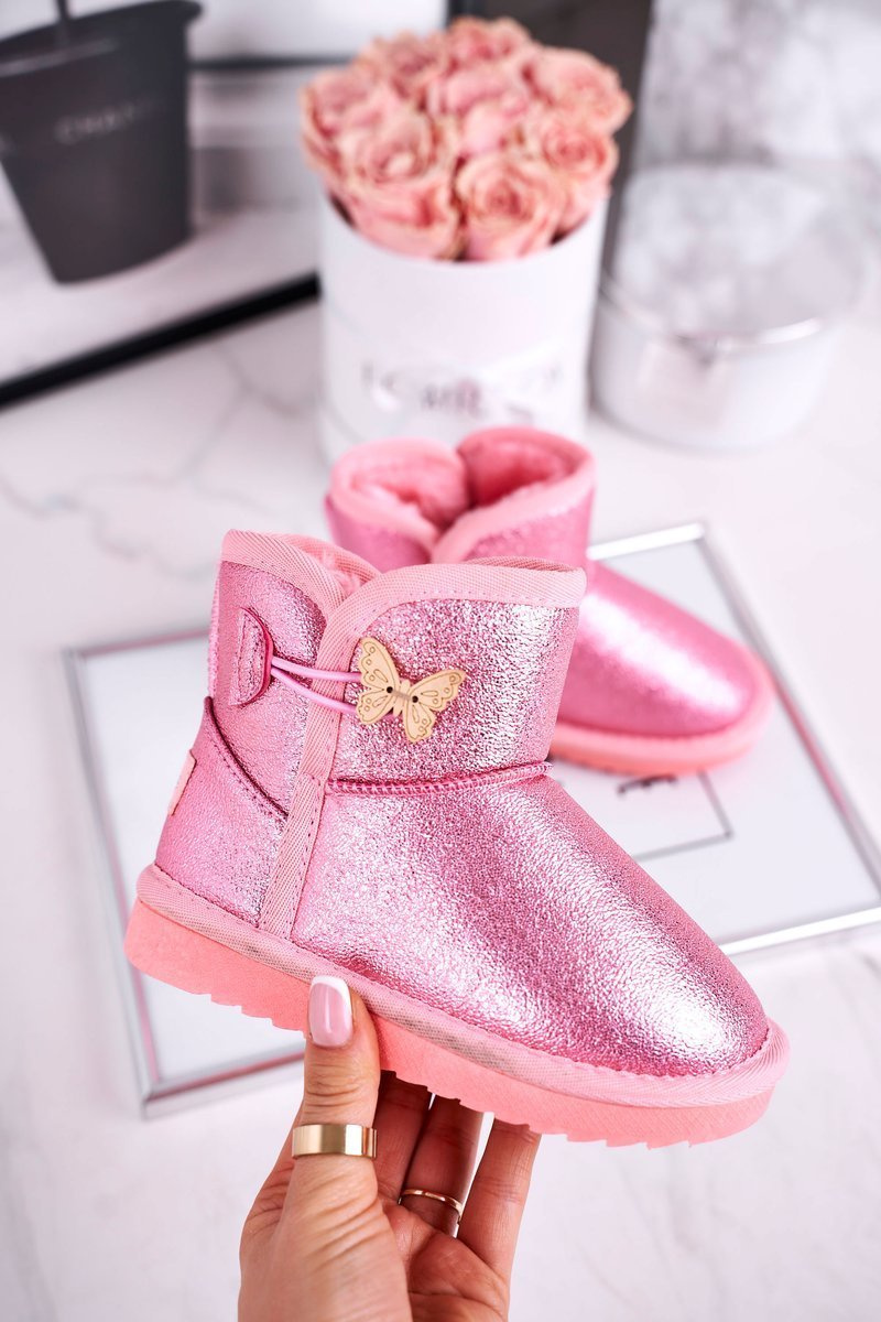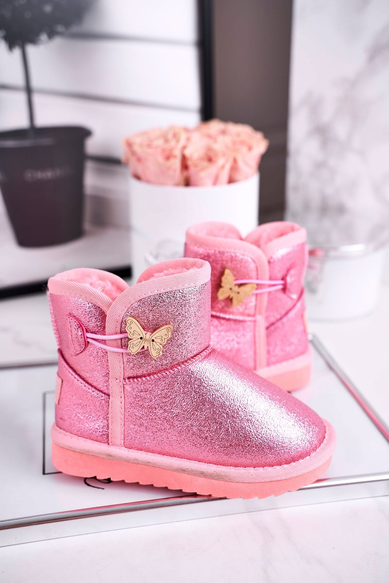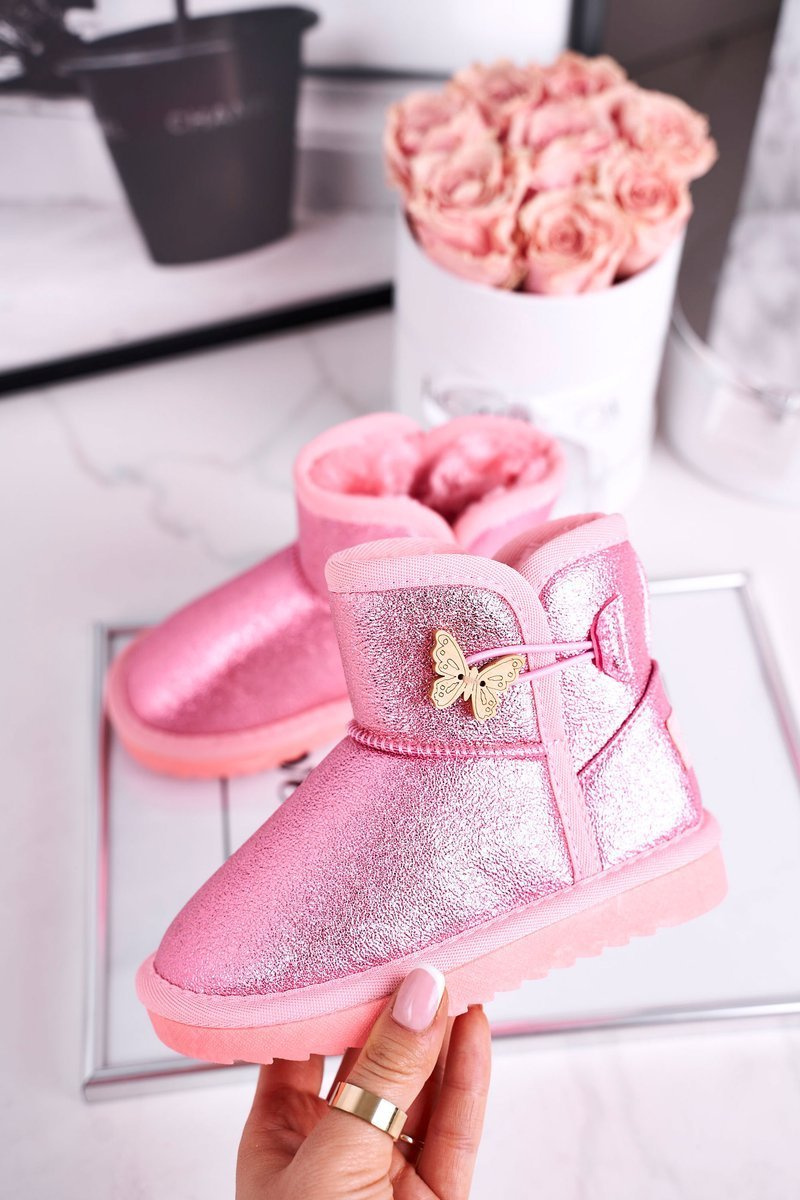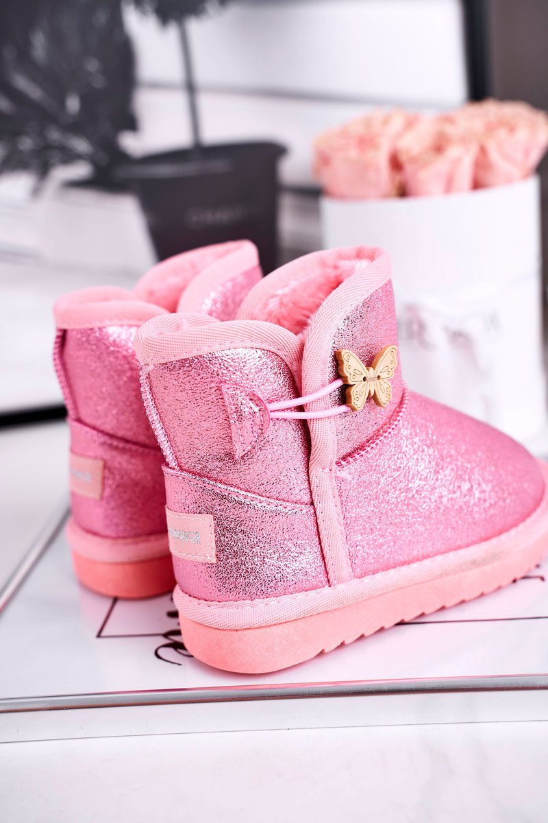 Ocieplane dziecięce botki śniegowce z motylkiem różowe Cosmic
