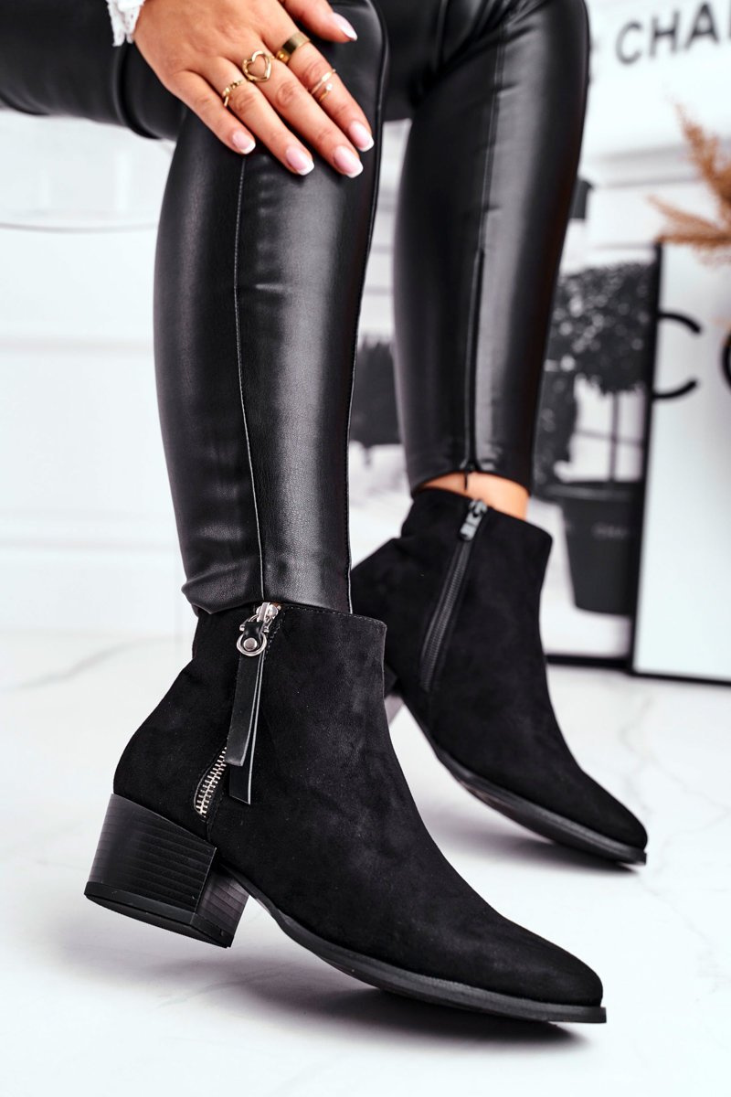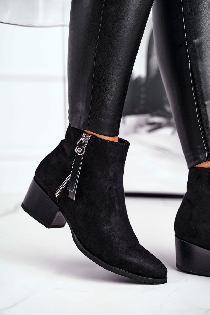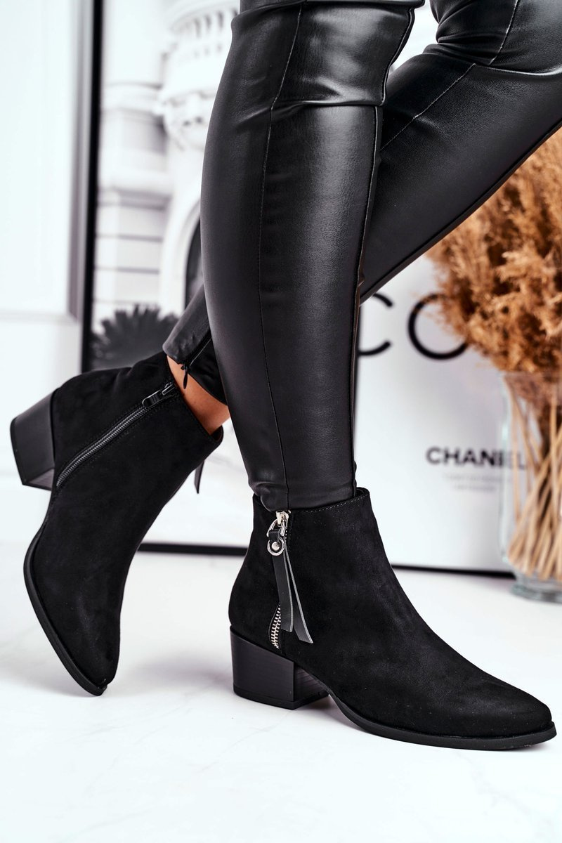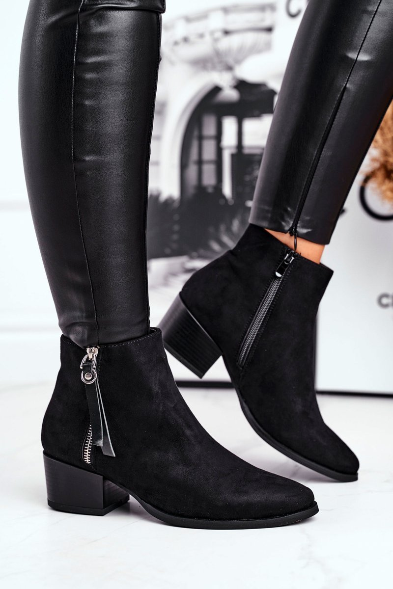 Damskie botki na obcasie ocieplane czarne Discretely