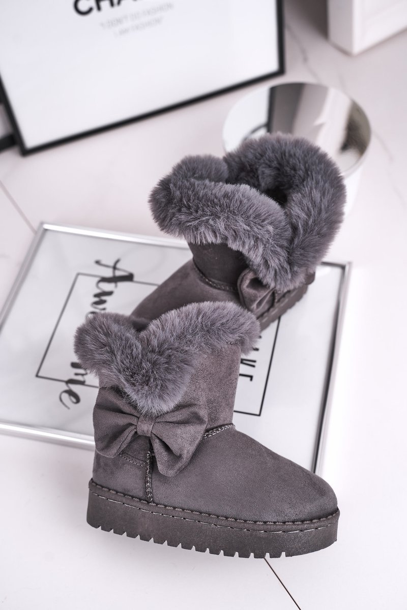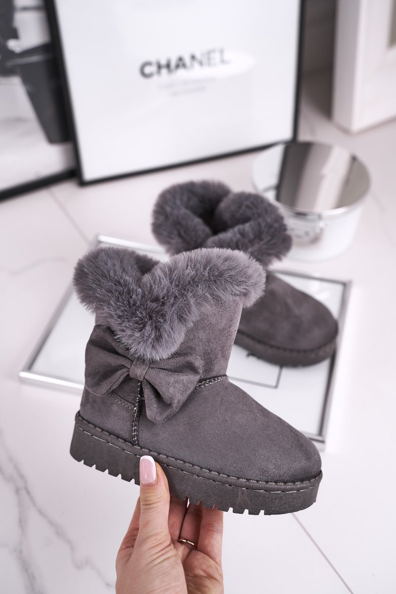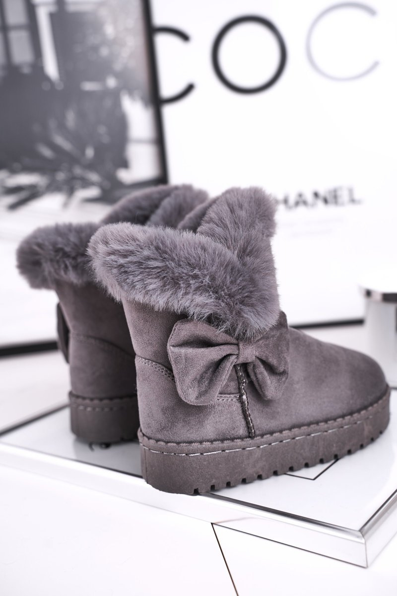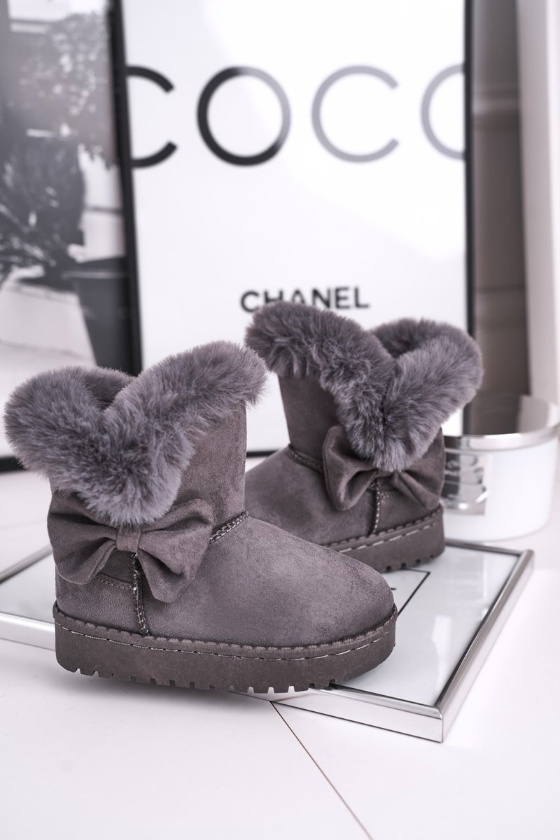 Dziecięce botki śniegowce z futerkiem kokardką szare Vella