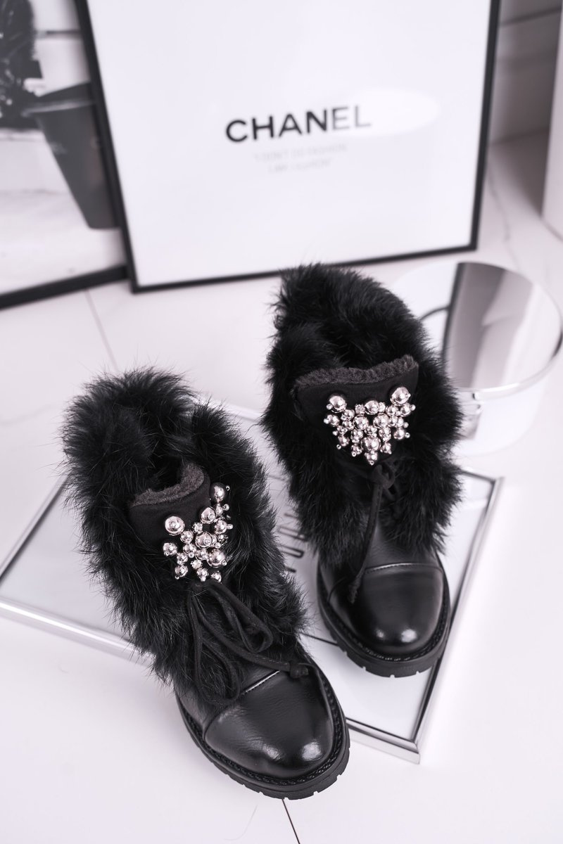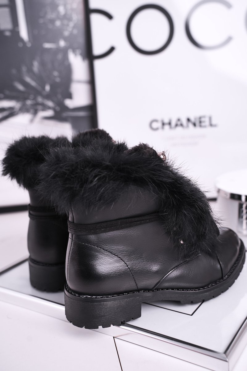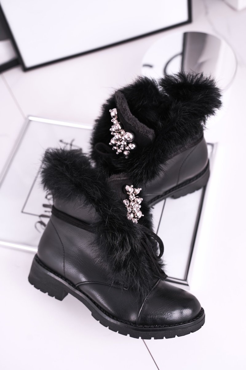 Dziecięce Ocieplane Botki Z Futerkiem Czarne Ella