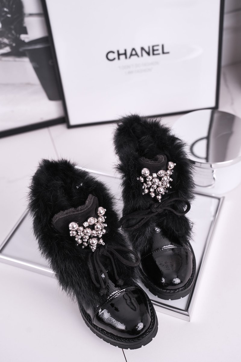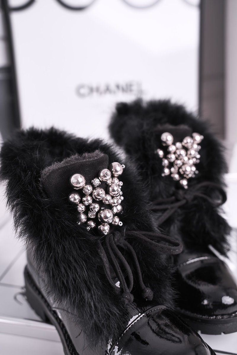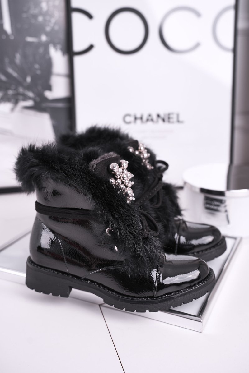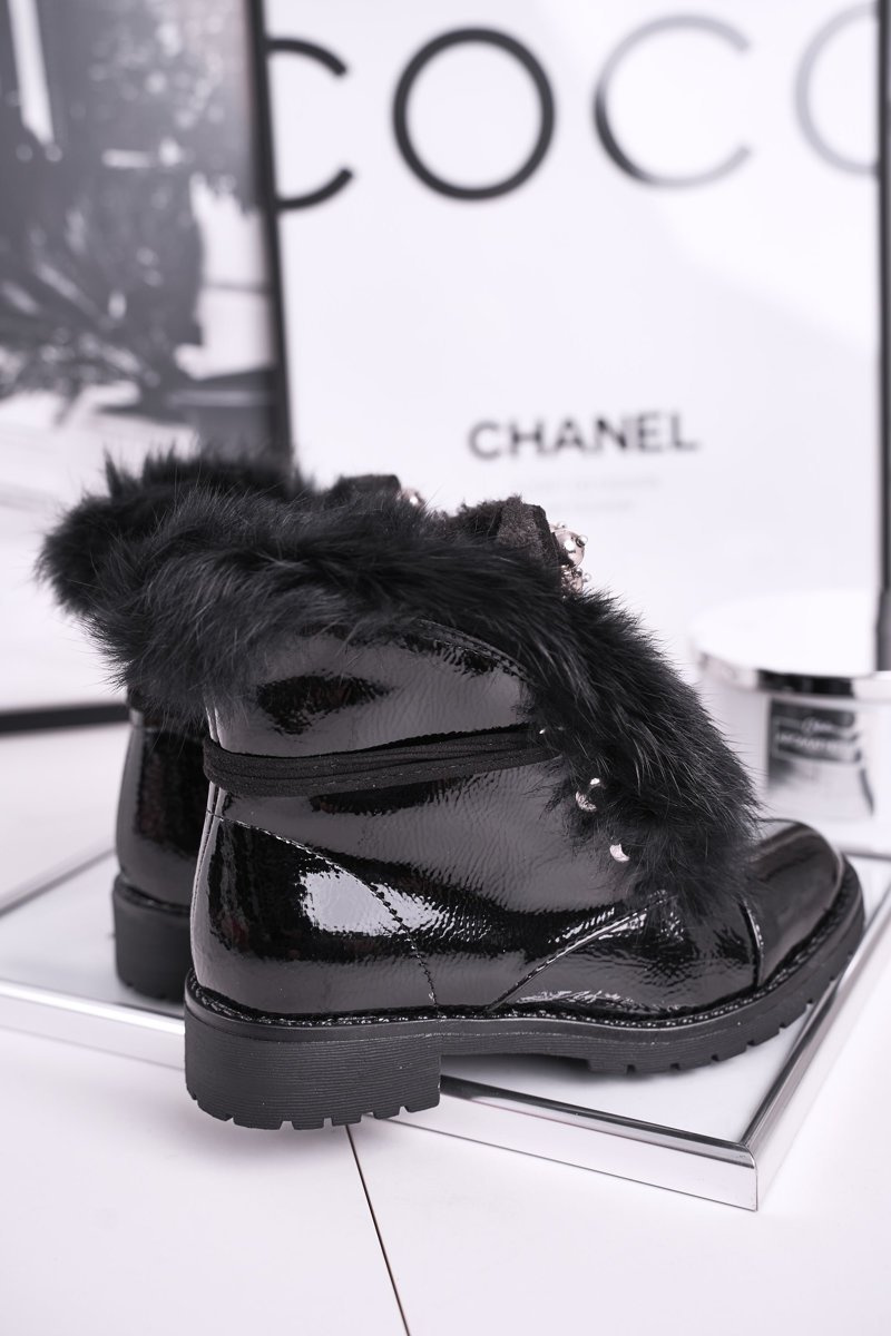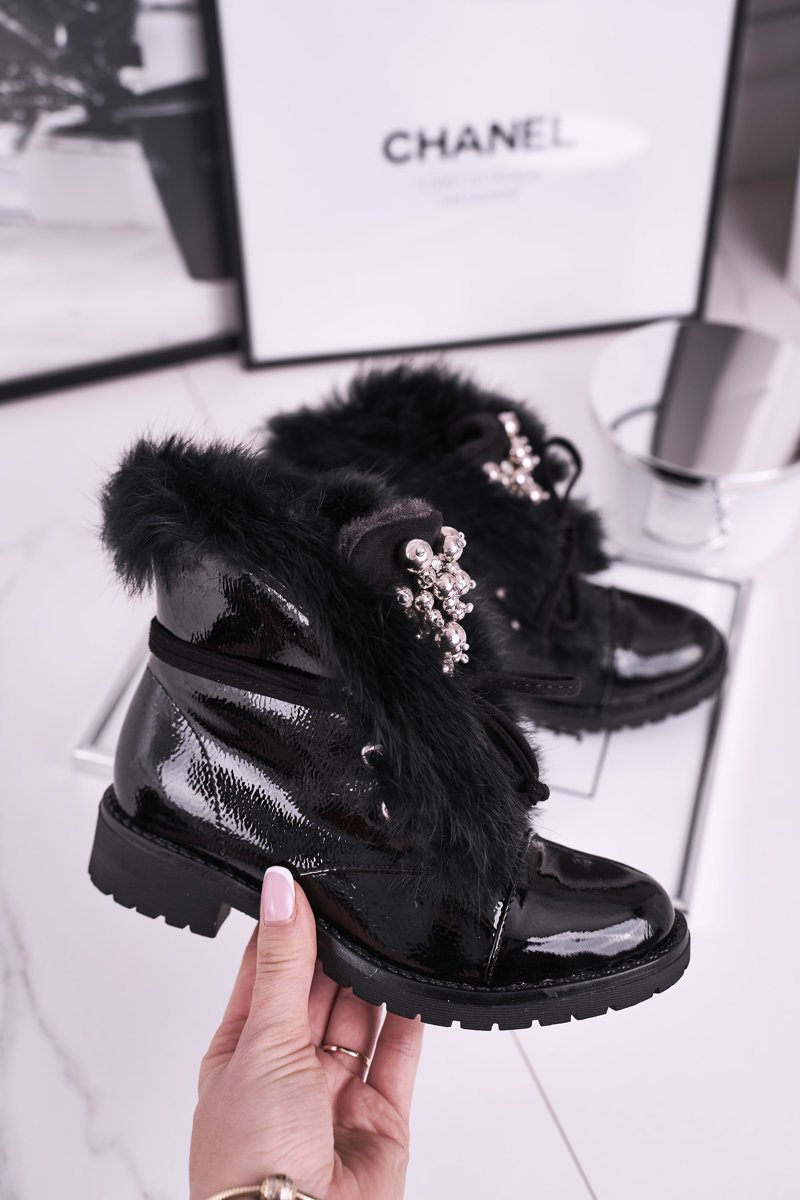 Dziecięce Ocieplane Botki Z Futerkiem Lakierowane Czarne Ella