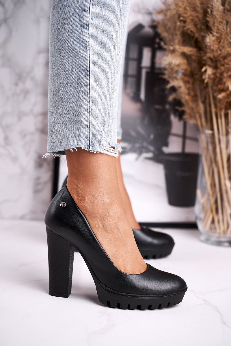 Skórzane Czółenka Na Słupku Maciejka 02629-01 Czarne