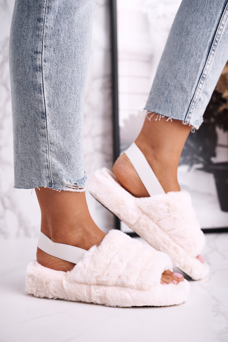 Papcie Damskie na Platformie Futrzane Beżowe Snowflake