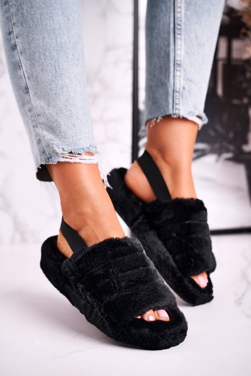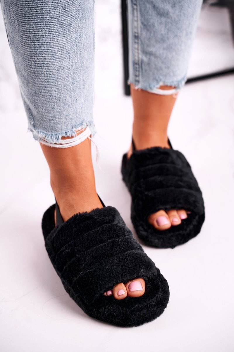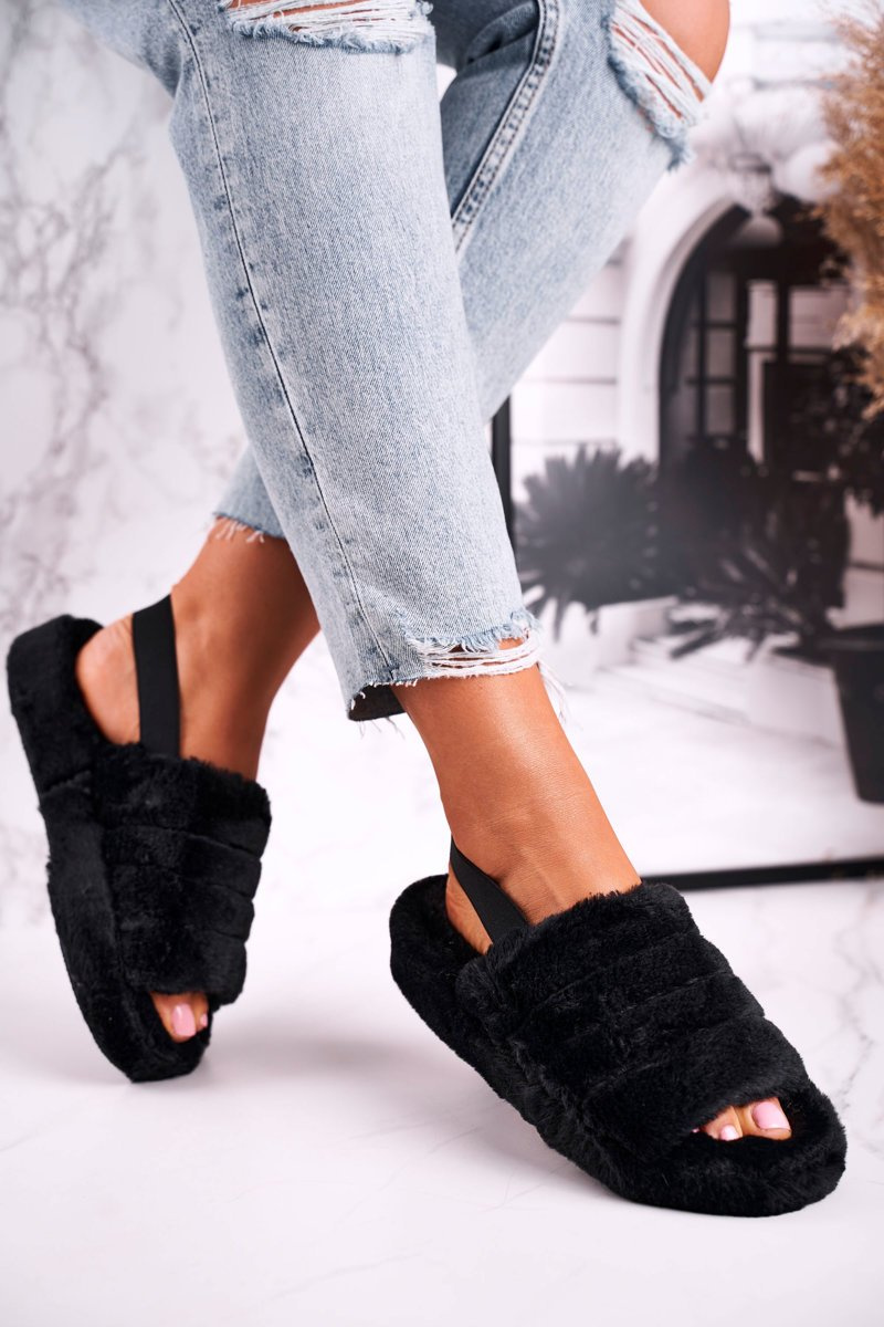 Futrzane Papcie Na Platformie Czarne Snowflake