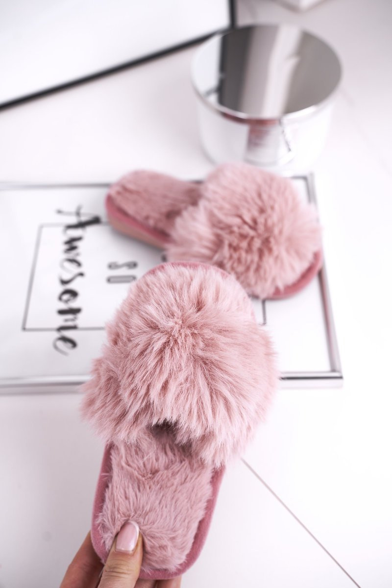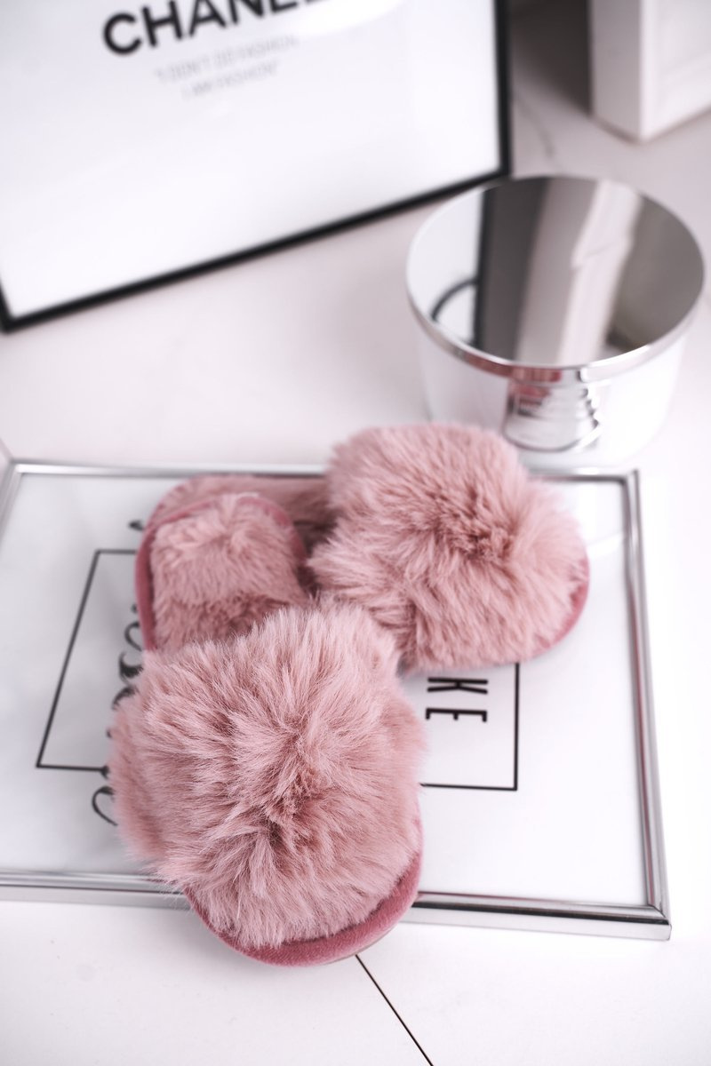 Dziecięce Papcie Klapki z Futerkiem Pudrowy Róż Snow Ball