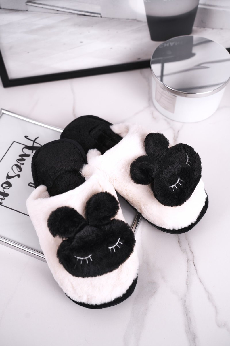 Papcie Damskie Futrzane Biało Czarne Rabbit