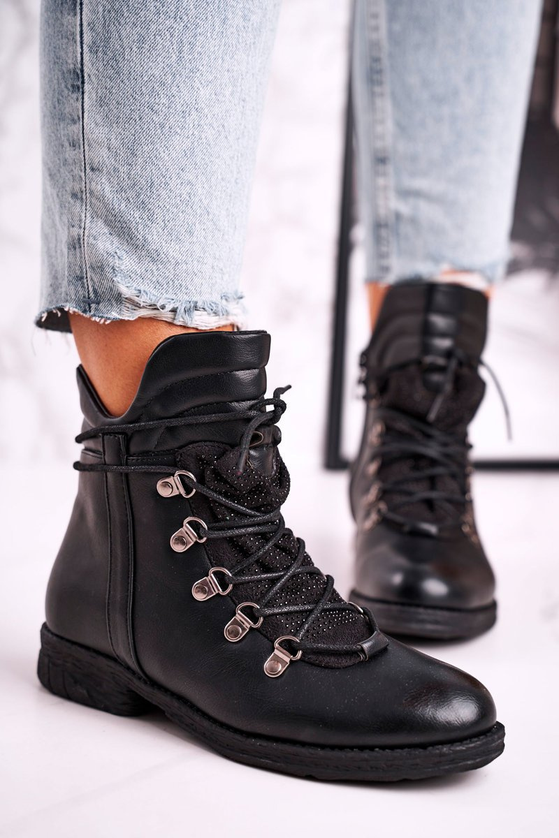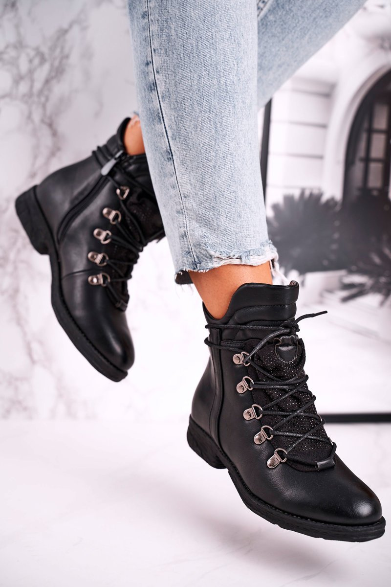 Damskie Ocieplane Botki z Cyrkoniami Czarne Gisele