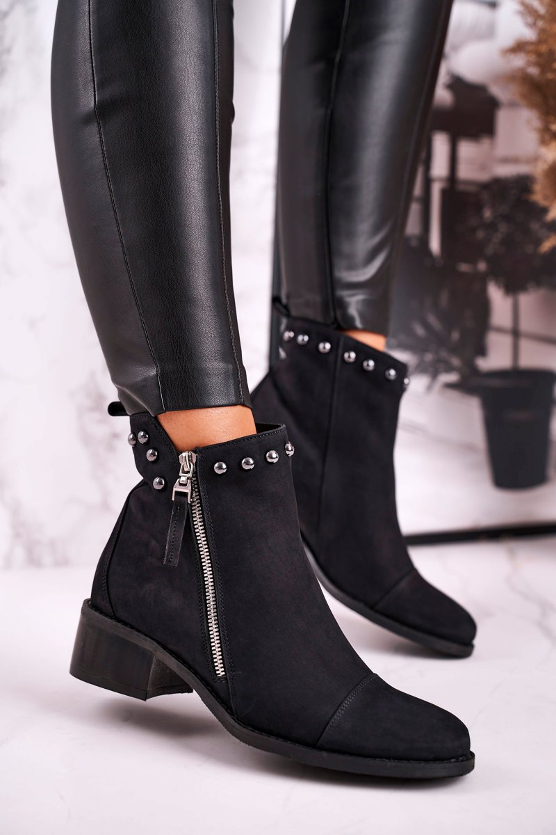 Botki Damskie Zamszowe Ocieplane Laura Messi Czarne 1879