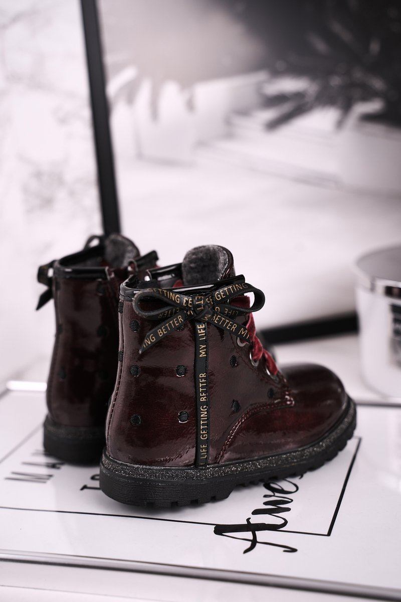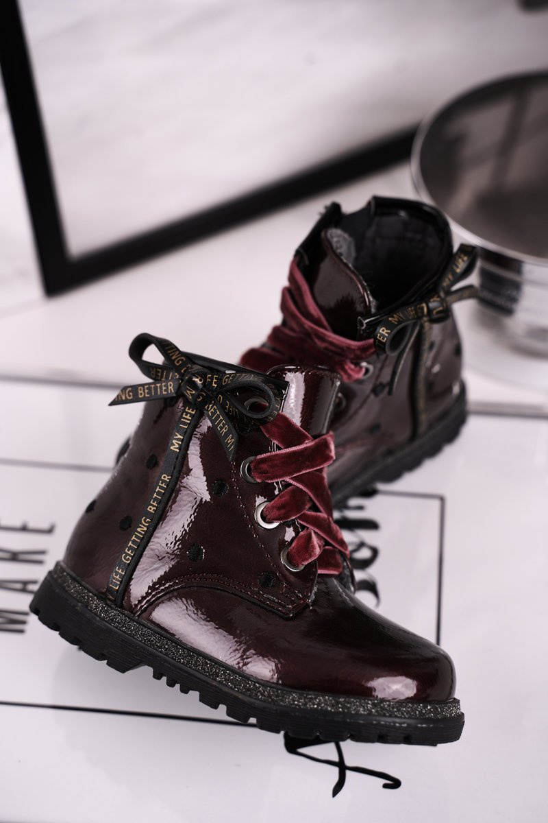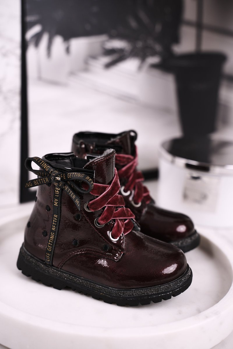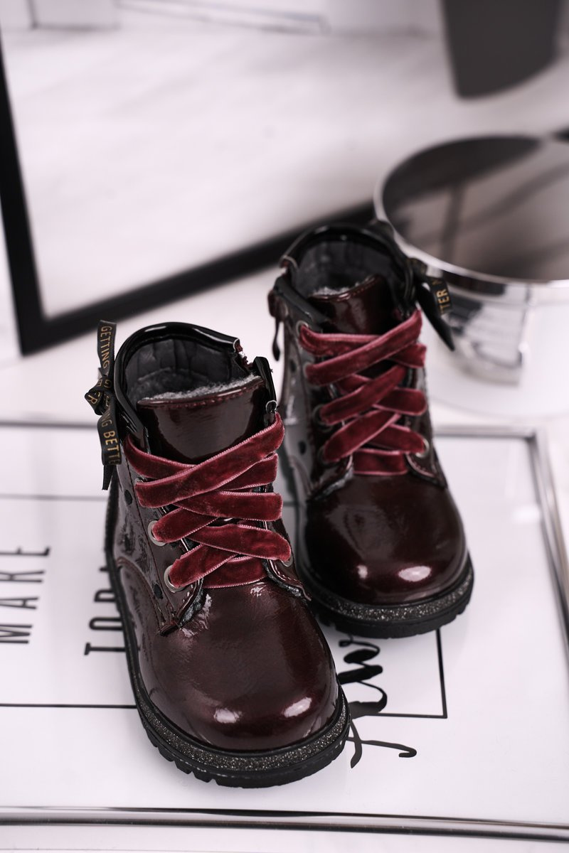 Dziecięce botki lakierowane ocieplane bordowe Essie