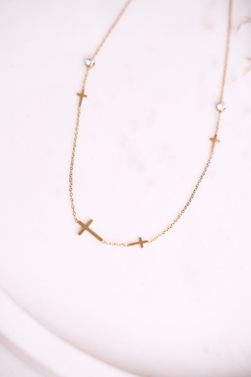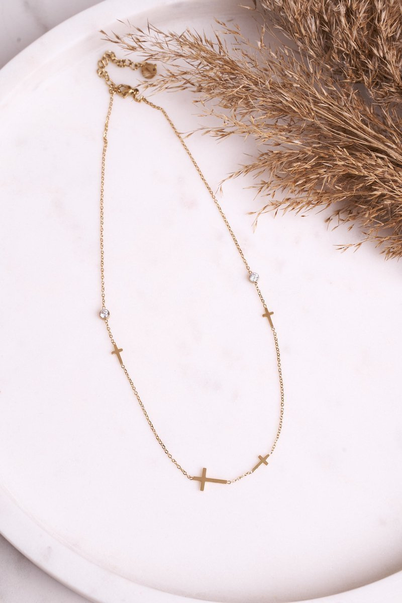 Naszyjnik Łańcuszek Krzyżyki i Cyrkonie Złoty Gentle
