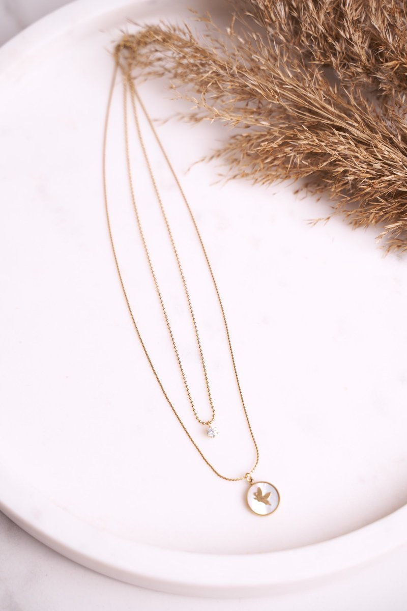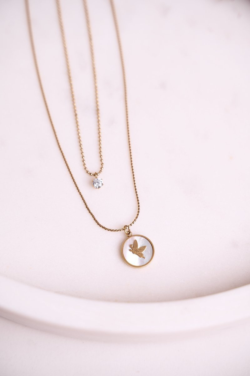 Naszyjnik Łańcuszek Podwójny Motyl i Cyrkonia Złoty Butterfly