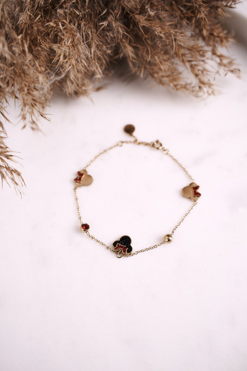 Bransoletka z Zawieszkami Czerwone Cyrkonie Złota Minnie