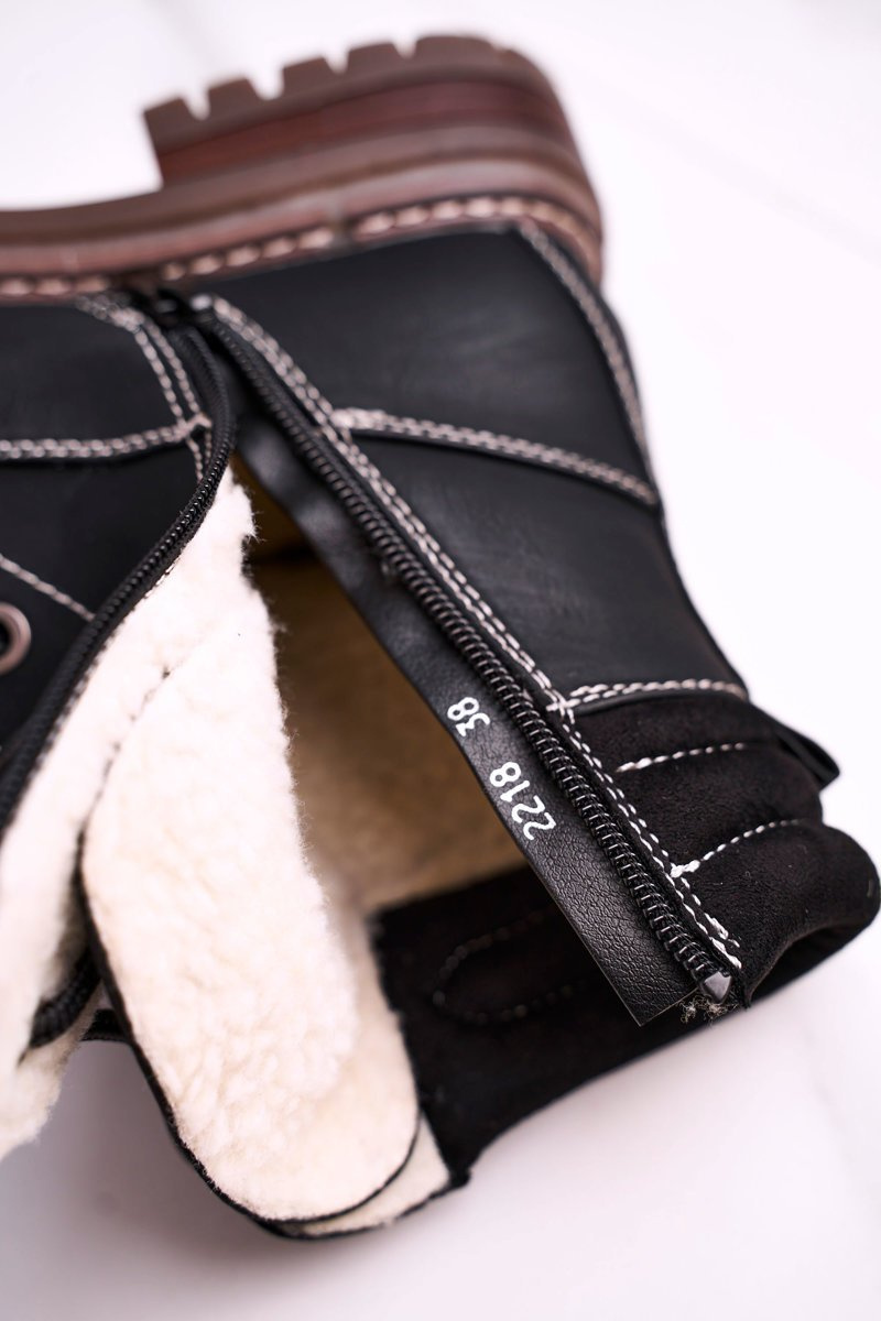 Damskie Ocieplane Workery Trapery Czarne Timber