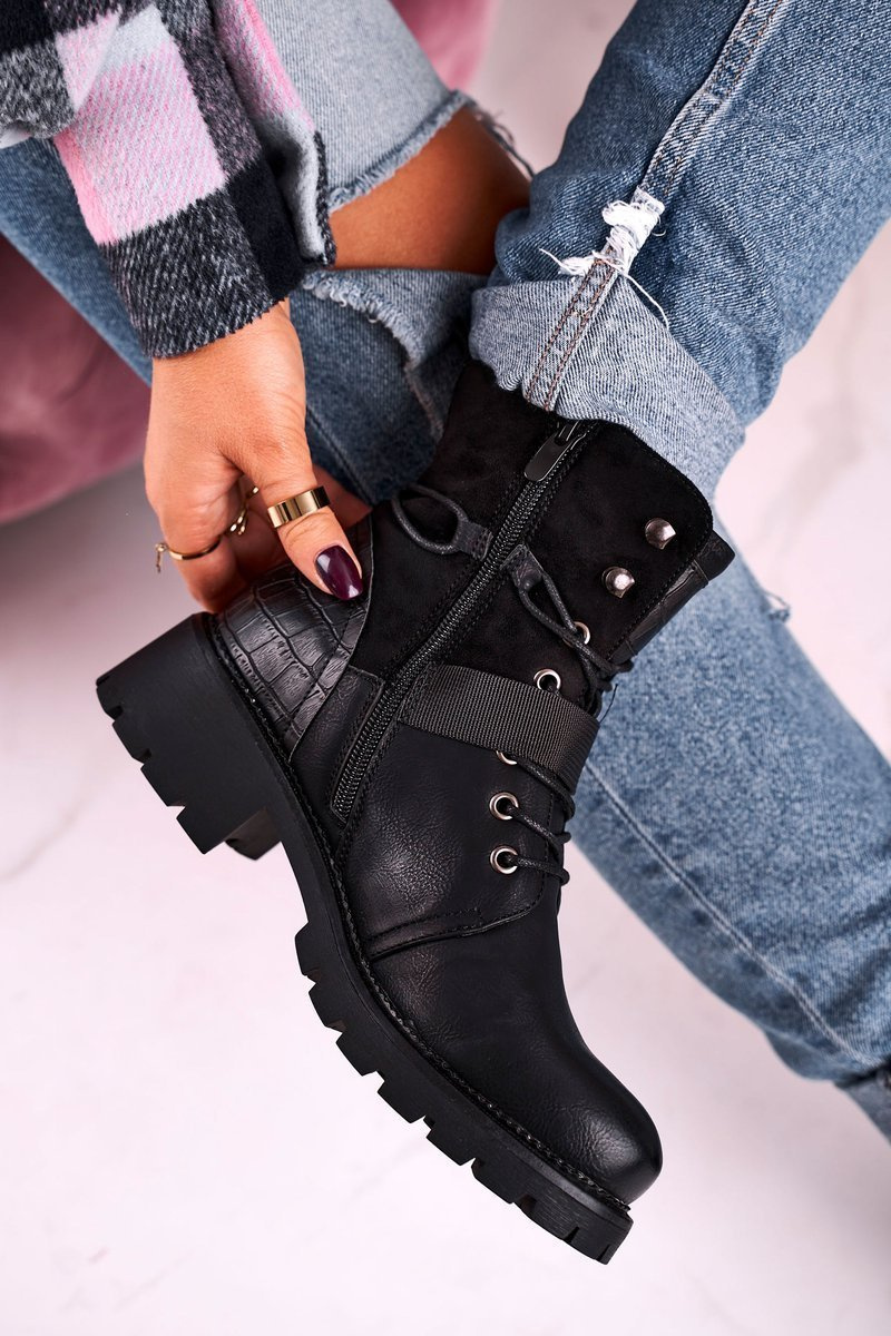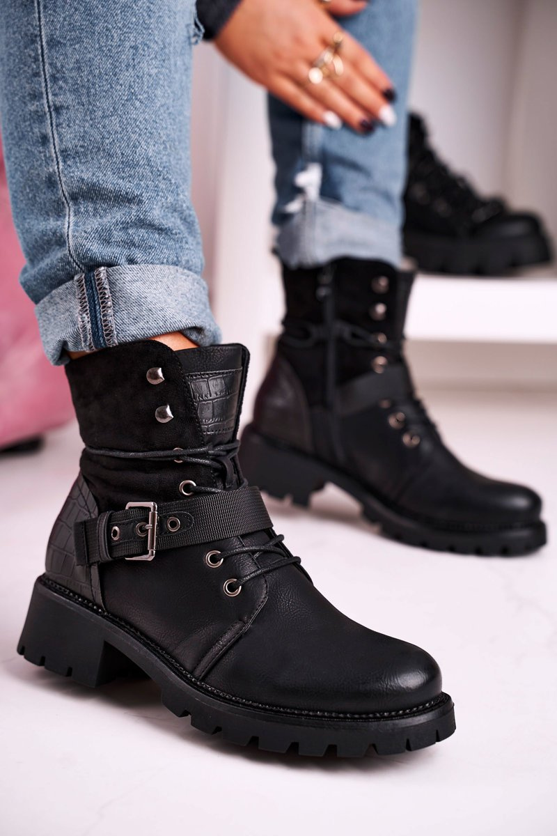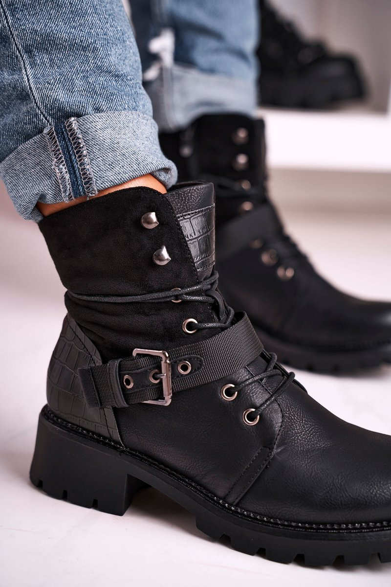 Damskie Ocieplane Botki Workery Czarne Strong