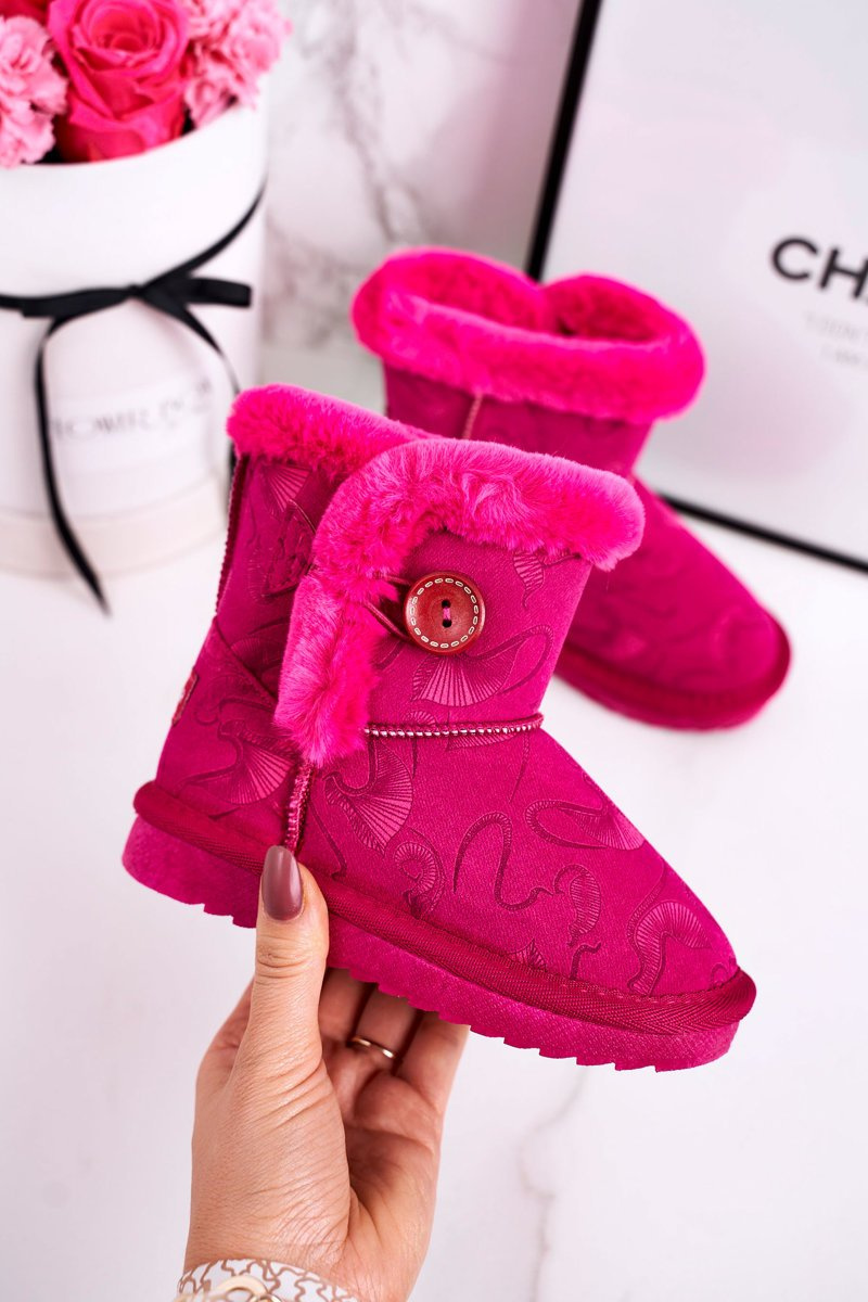 Dziecięce Botki Śniegowce Z Futerkiem I Guzikiem Fuksja Kawai