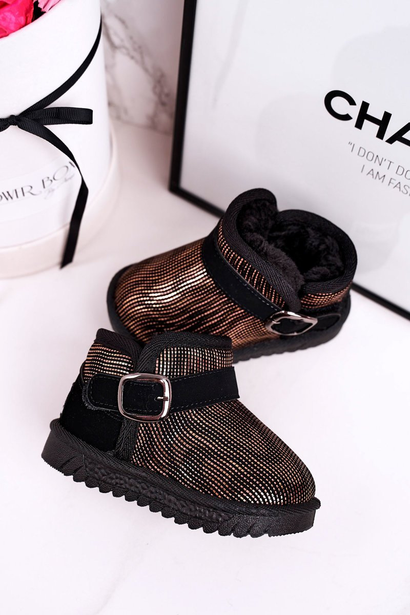 Dziecięce Botki Śniegowce Z Futerkiem Złoto Czarne Dreamy