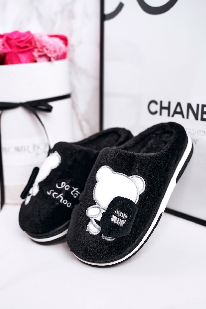 Dziecięce Klapki Papcie Z Misiem Czarne Go To School