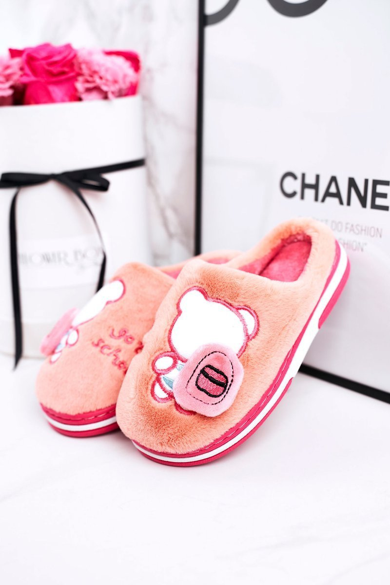 Dziecięce Klapki Papcie Z Misiem Różowe Go To School