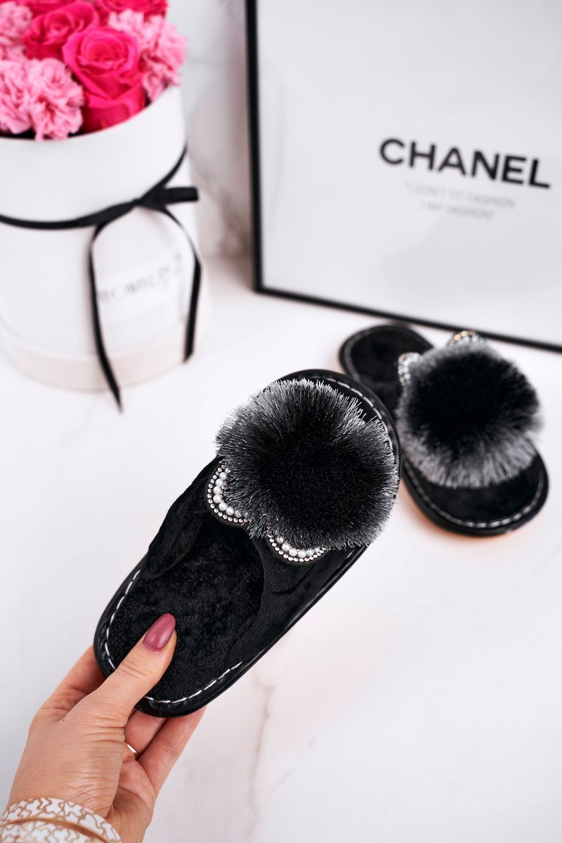 Dziecięce Klapki Papcie Z Pomponem Czarne Cinderella