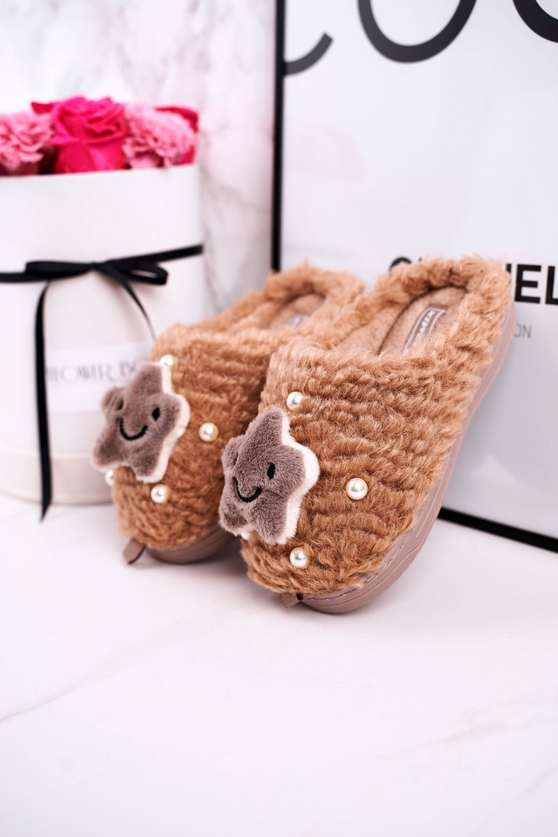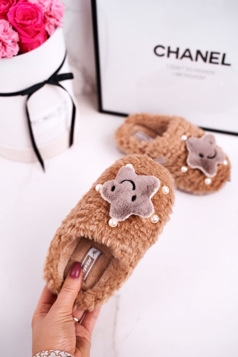 Dziecięce Ocieplane Klapki Papcie Brązowe Little Star