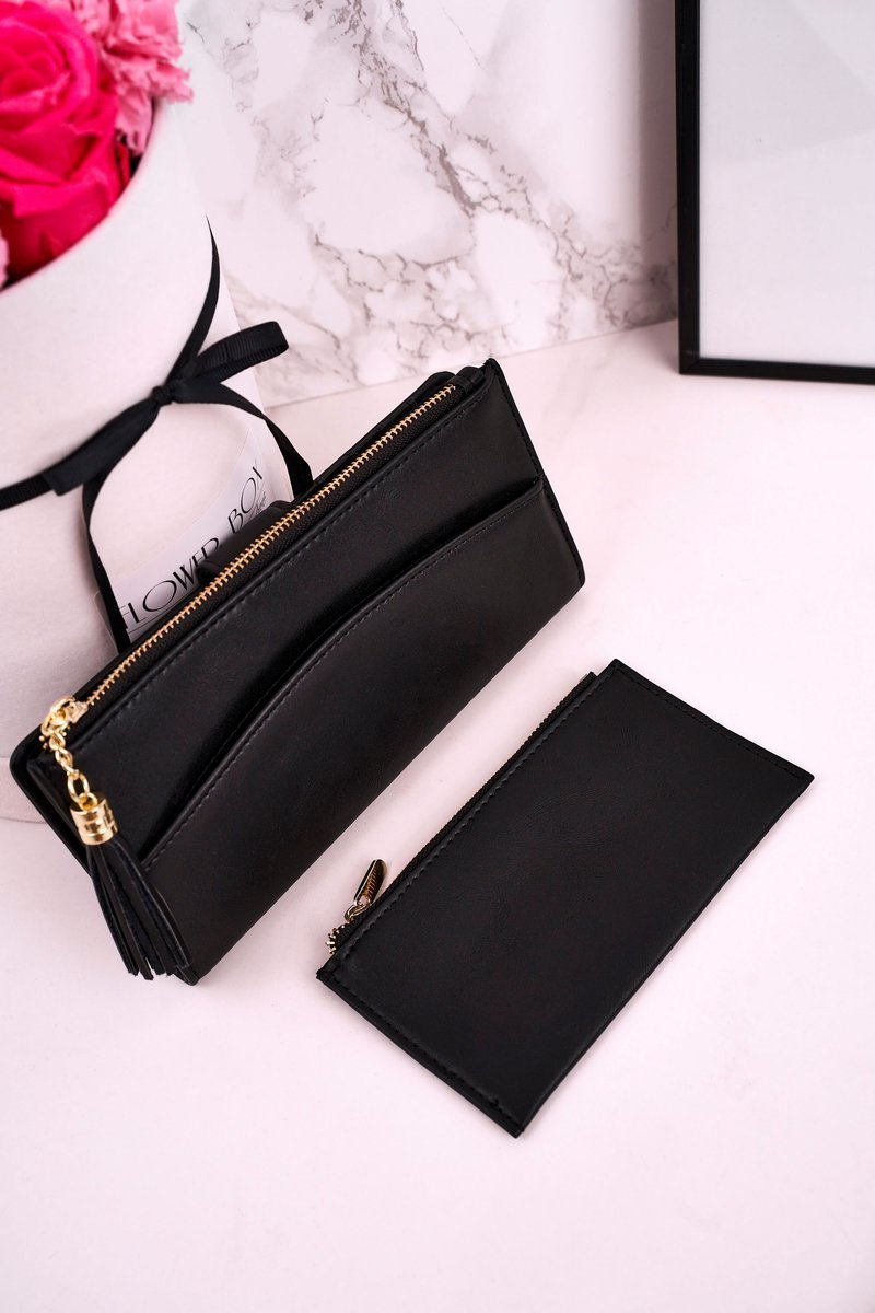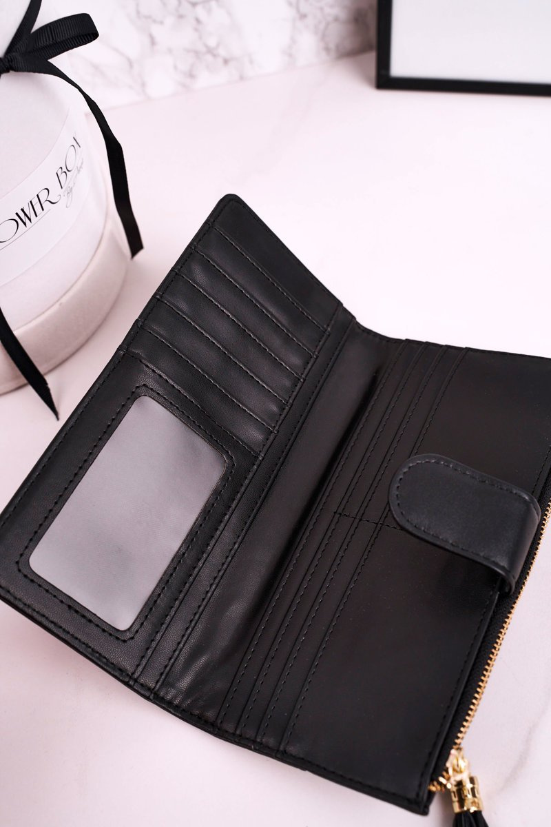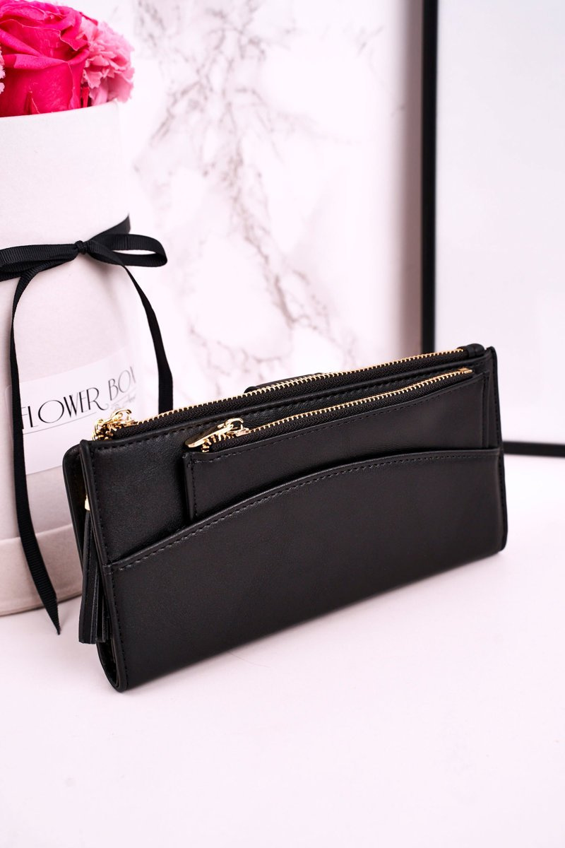 Duży Portfel Damski Z Dodatkową Portmonetką I Frędzlami Czarny