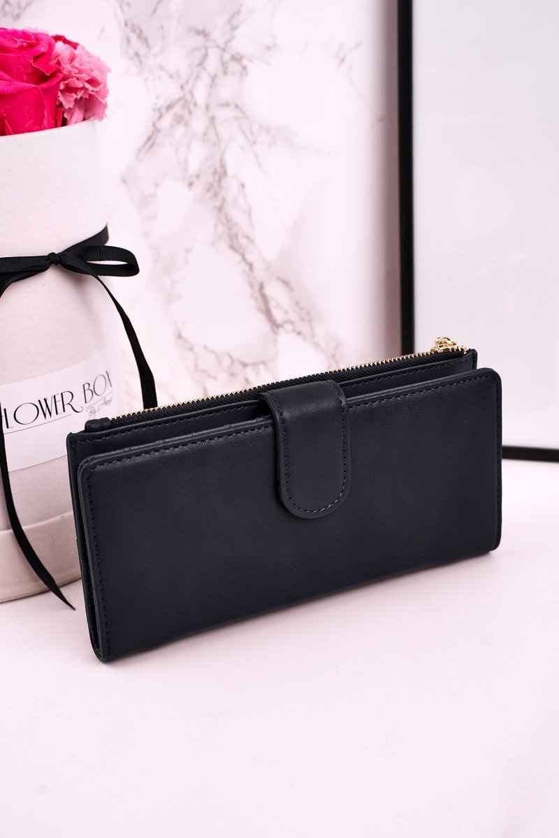 Duży i praktyczny portfel zapinany na zamek i zatrzask. Portfel pomieści bilon, banknoty oraz karty płatnicze i dokumenty. Wykonany ze skóry ekologicznej, dostępny w kilku kolorach. W zestawie znajduje się mała portmonetka zapinana na zamek.