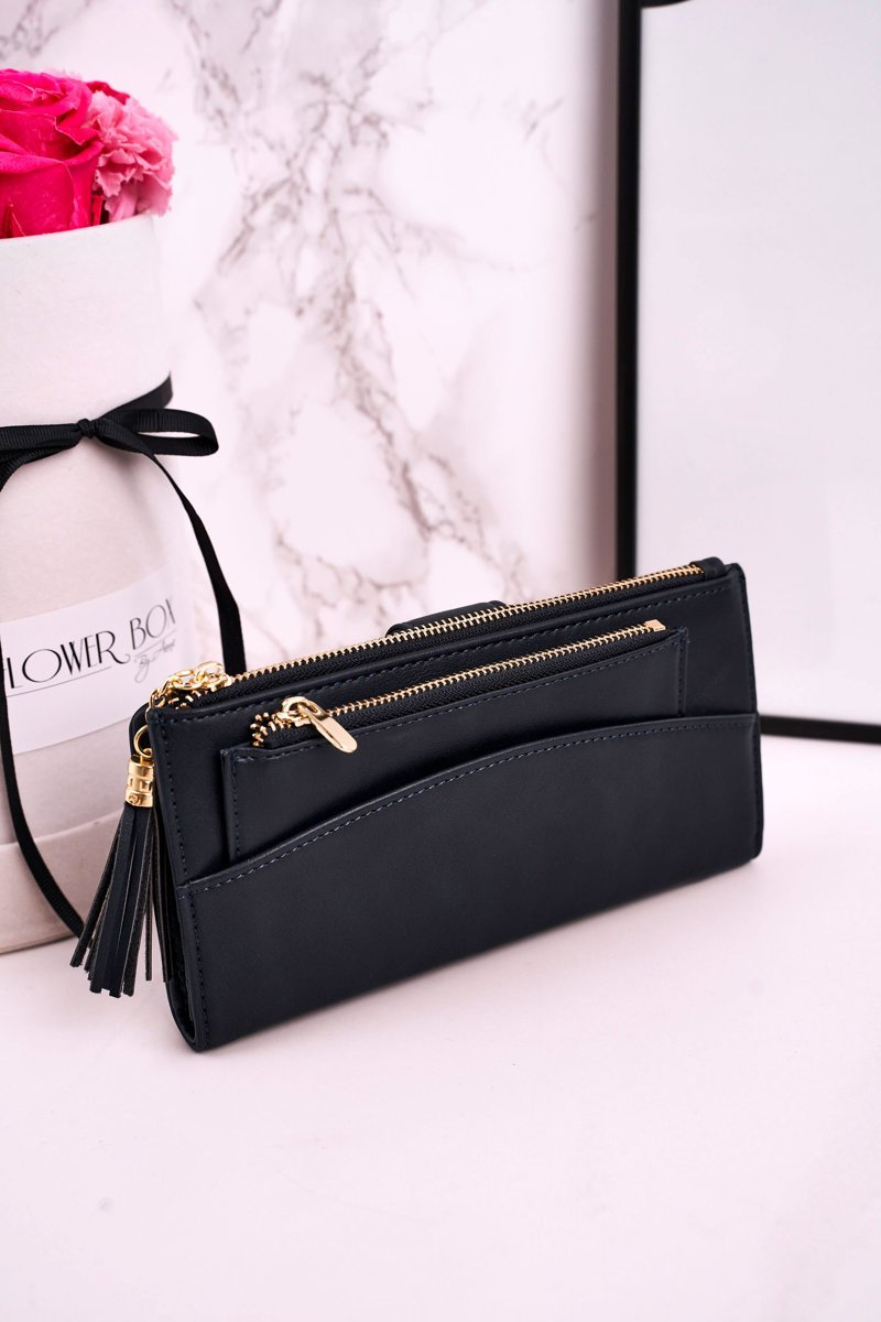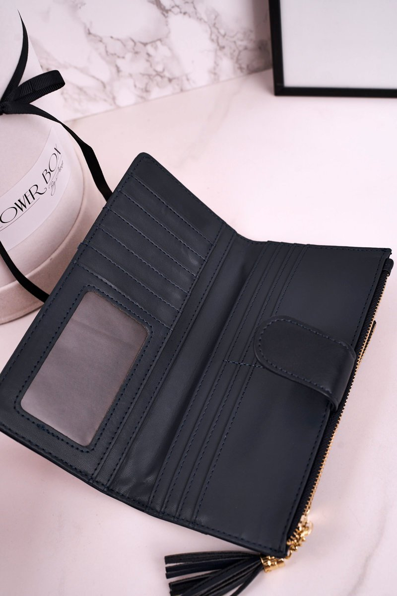 Duży Portfel Damski Z Dodatkową Portmonetką I Frędzlami Granatowy