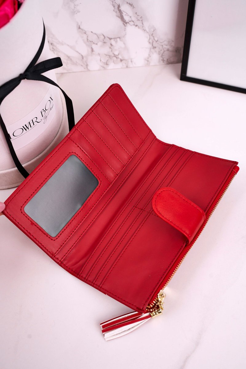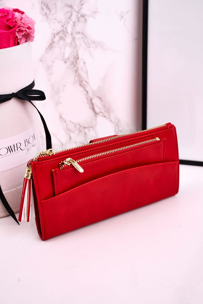 Duży Portfel Damski Z Dodatkową Portmonetką I Frędzlami Czerwony