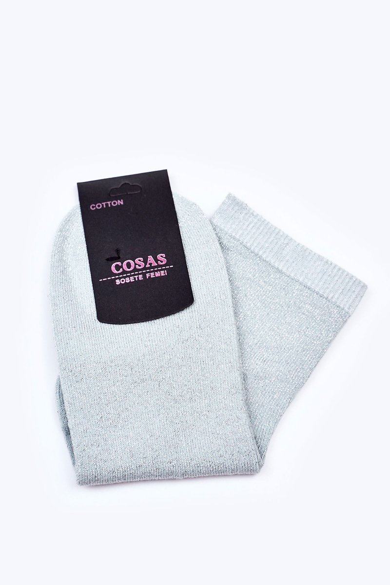 Miękkie, bawełniane skarpetki damskie przeszyte srebrną nitką. Skład: 95% bawełna, 5% spandex. Spraw prezent sobie lub komuś bliskiemu!