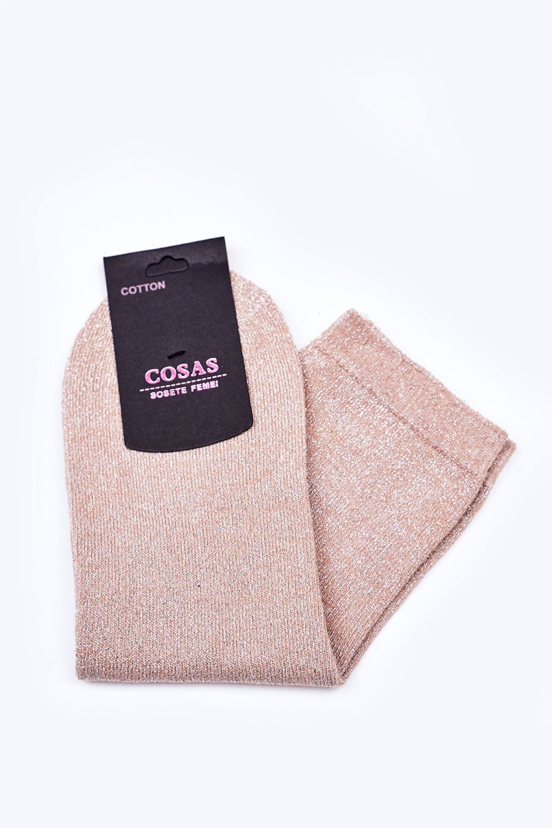 Damskie Bawełniane Skarpetki Ze Srebrną Nitką COSAS Beżowe